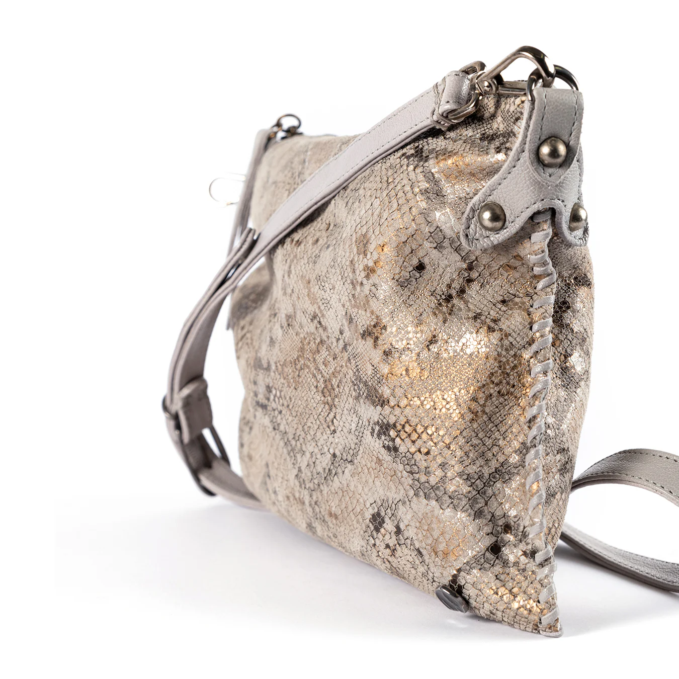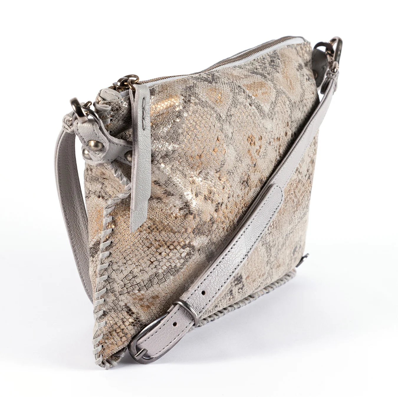 Rantu : Ladies Leather Crossbody Handbag in Cream & Platino