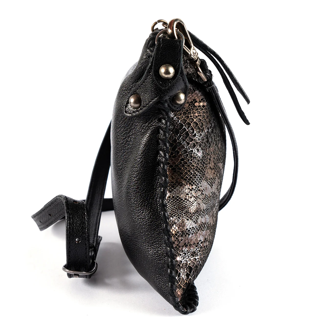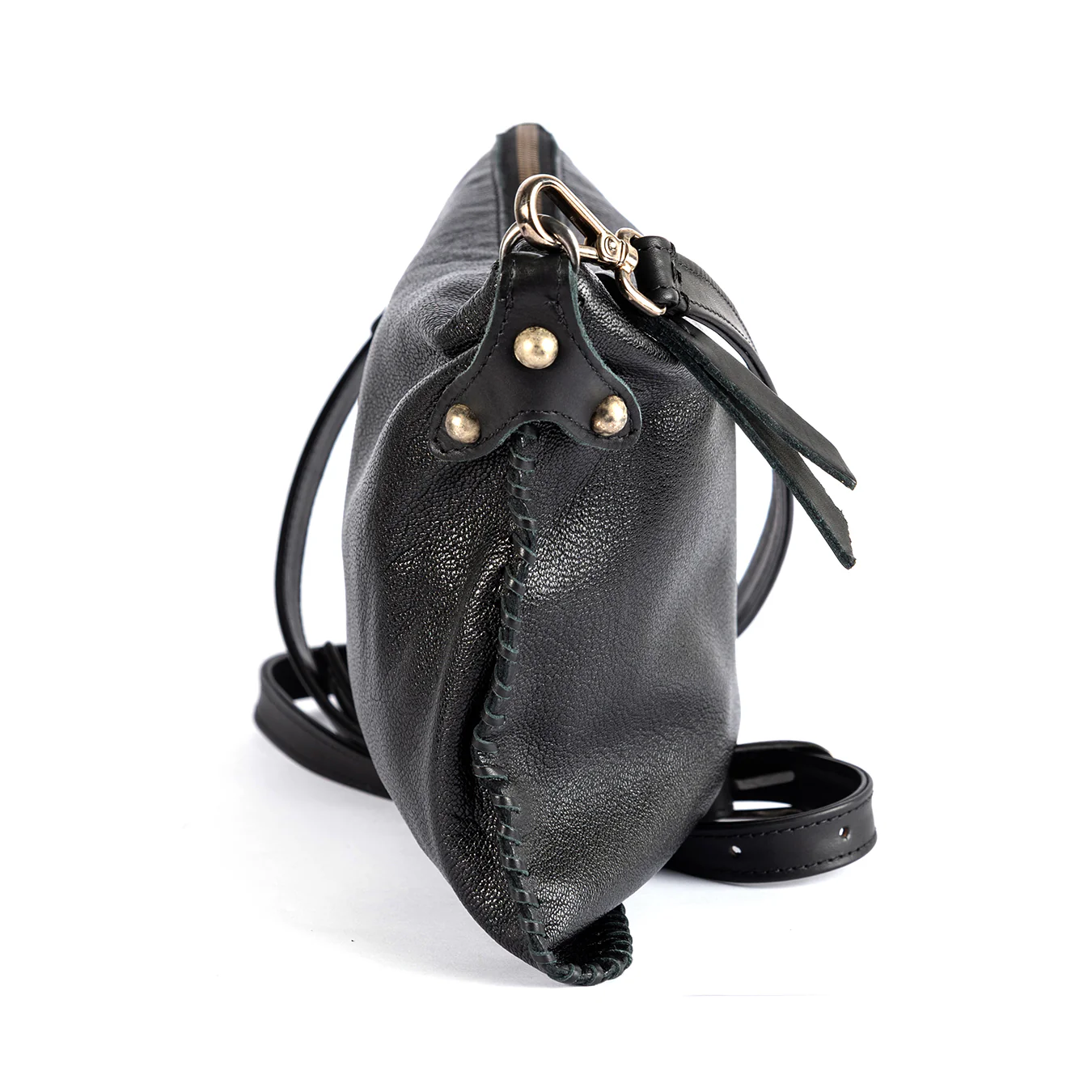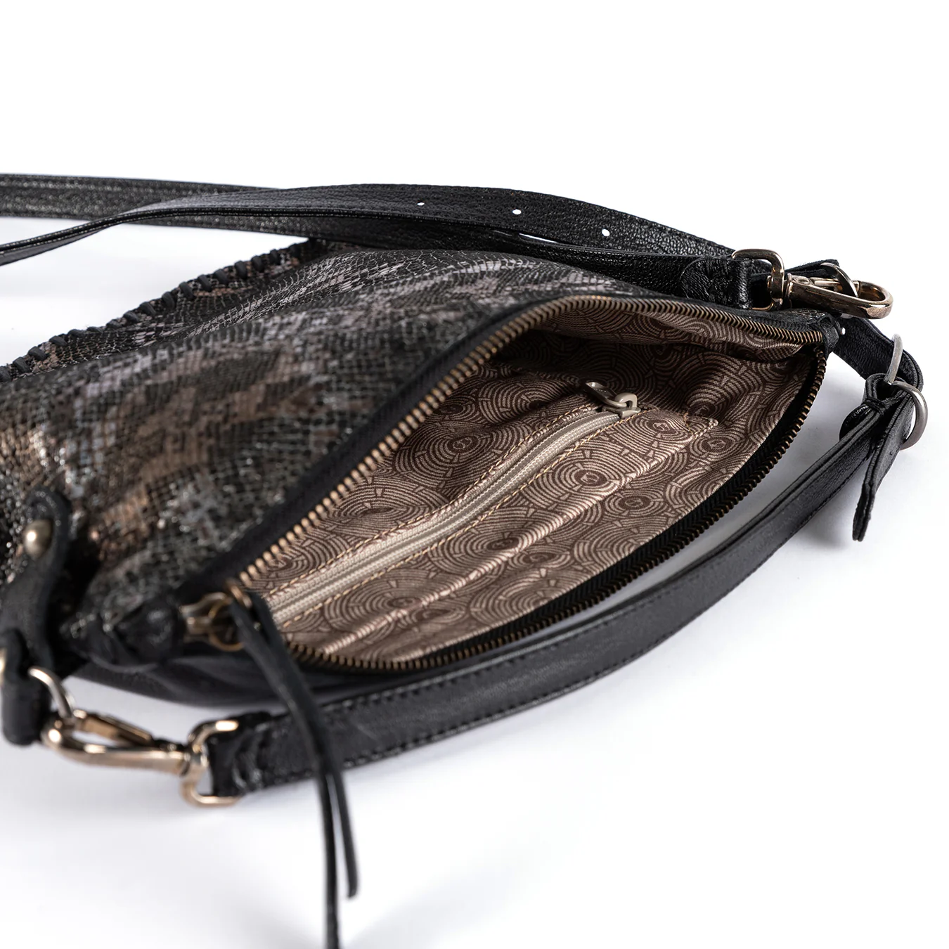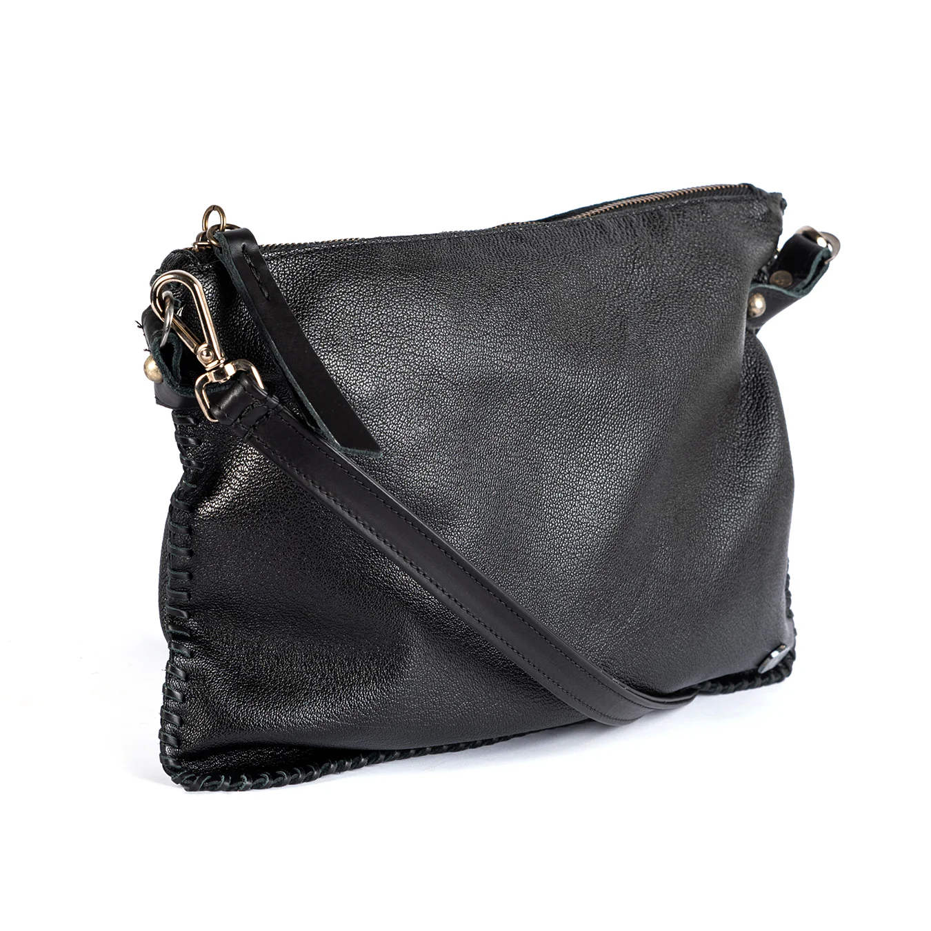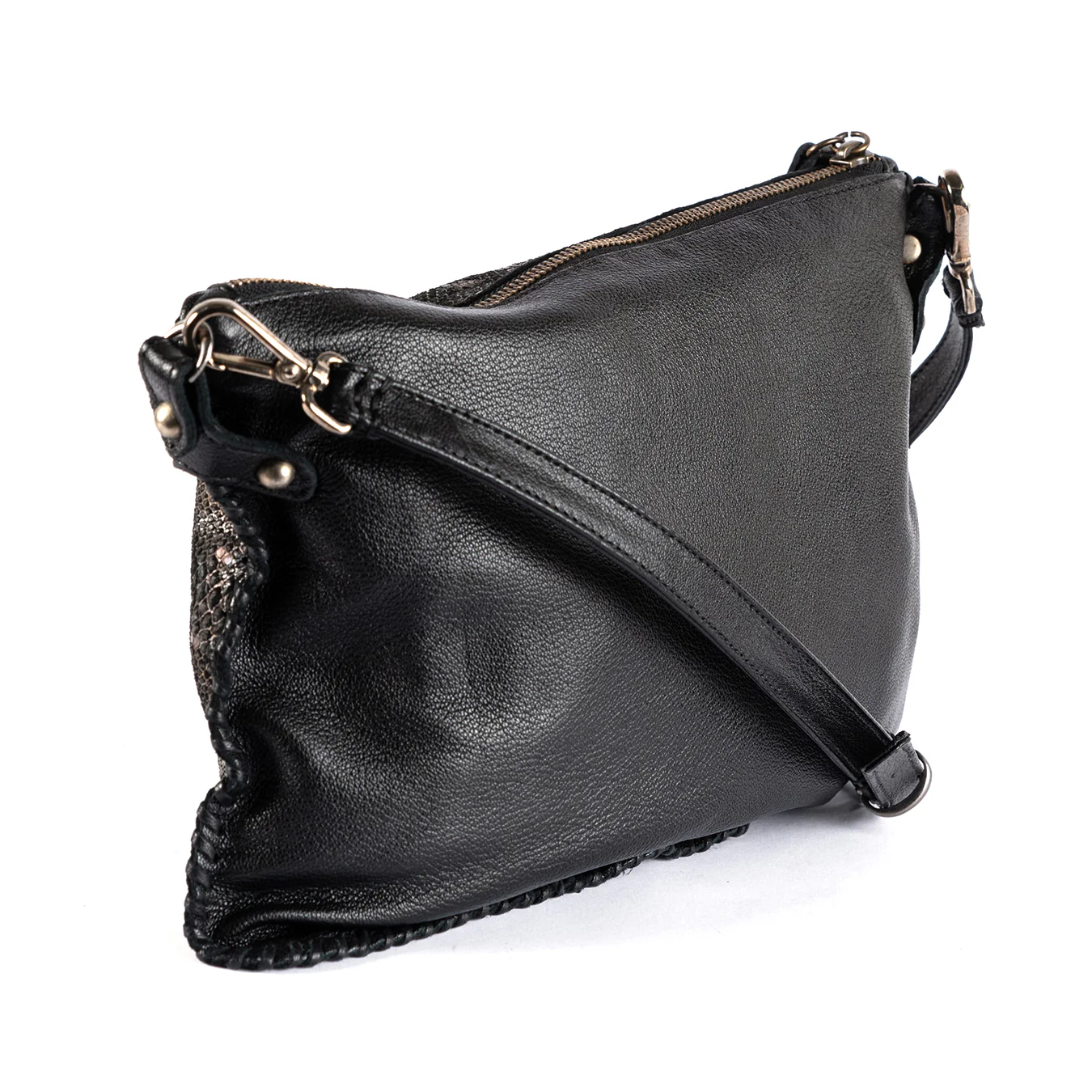 Rantu : Ladies Leather Crossbody Handbag in Black Cayak