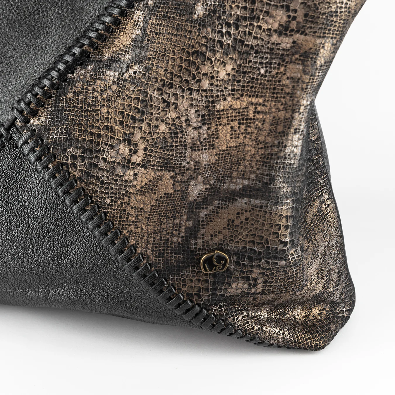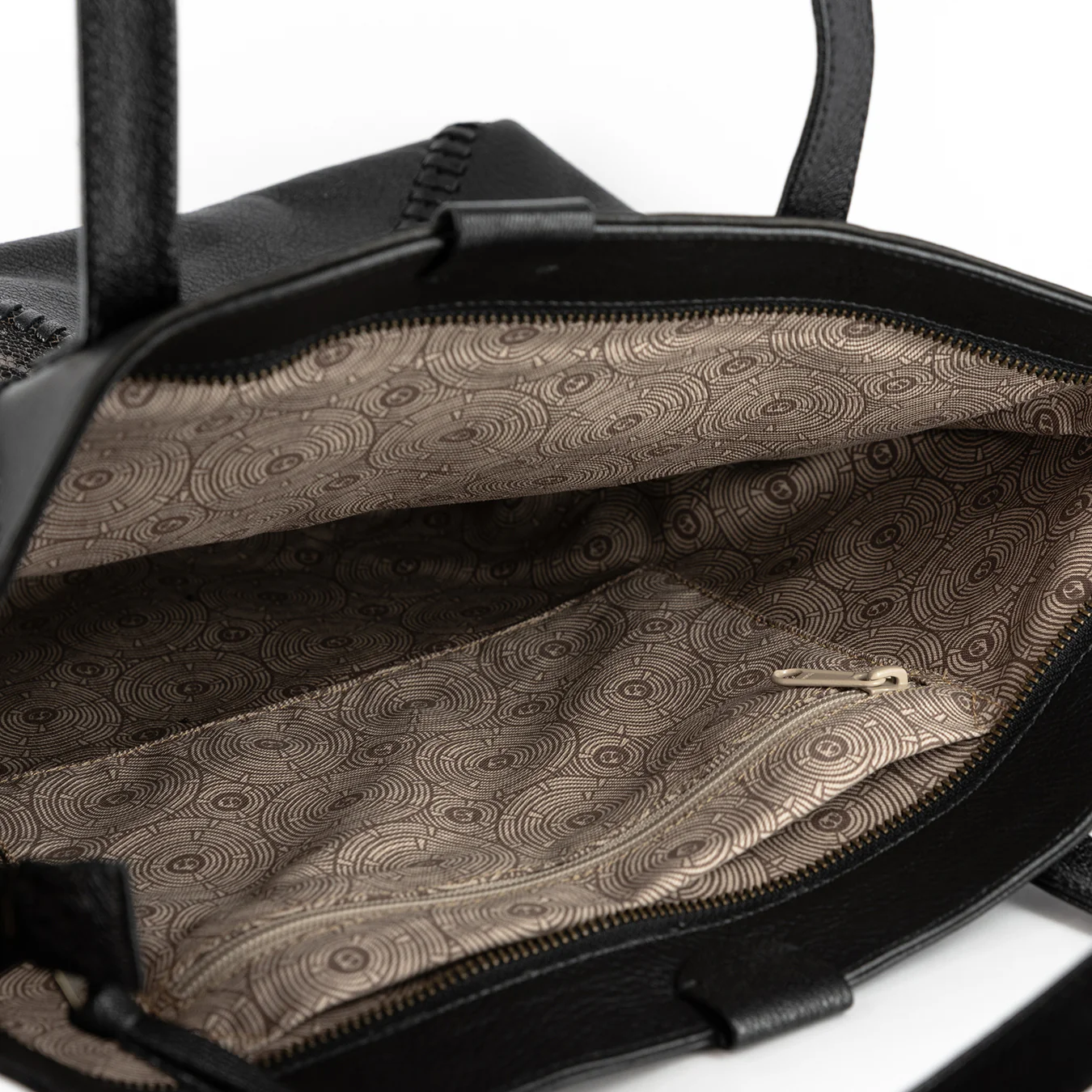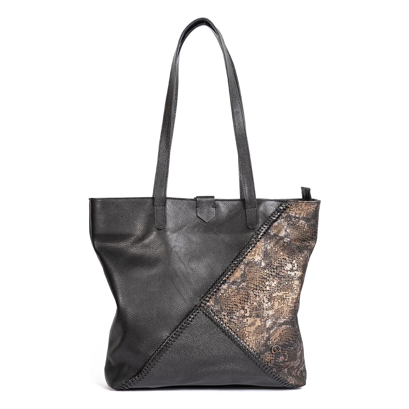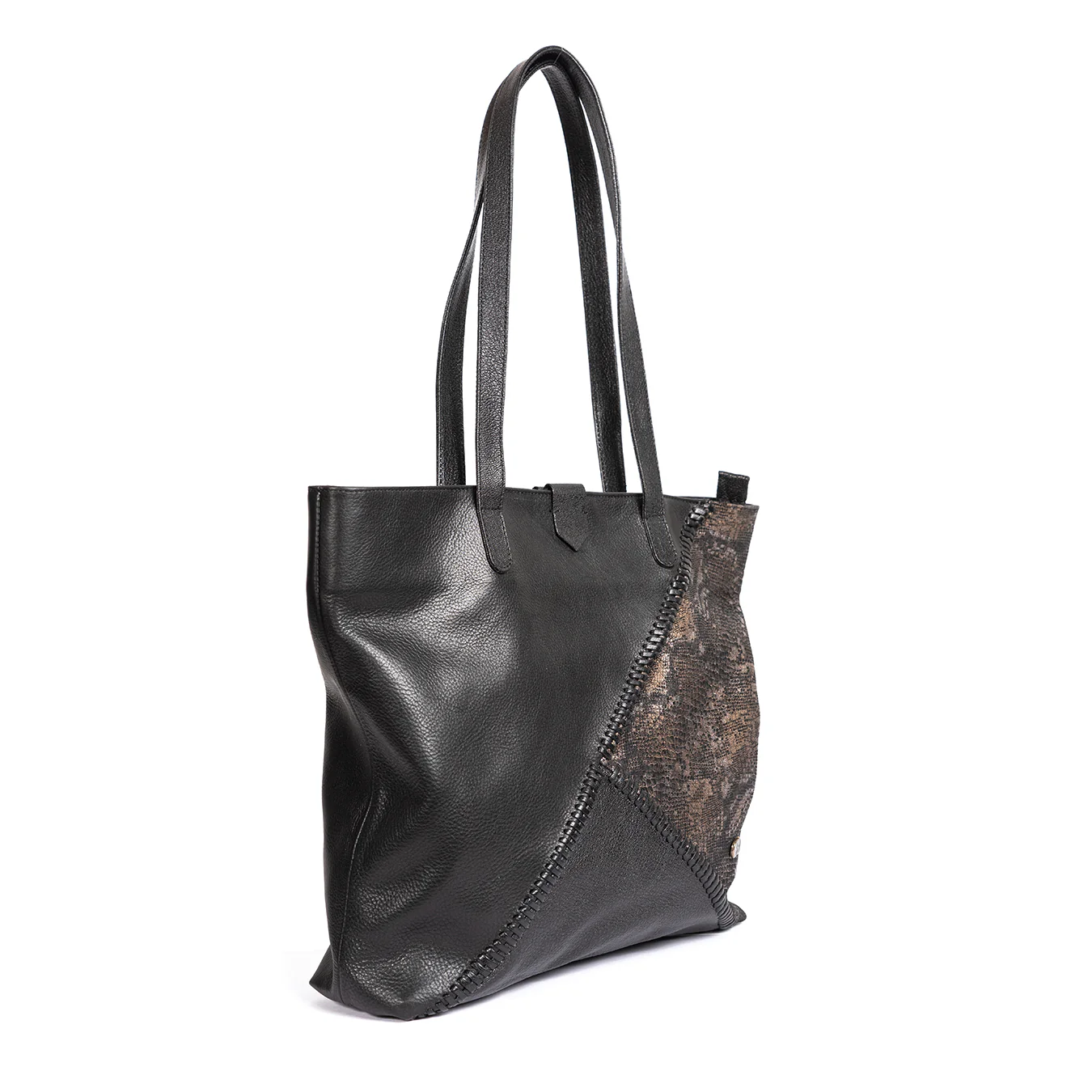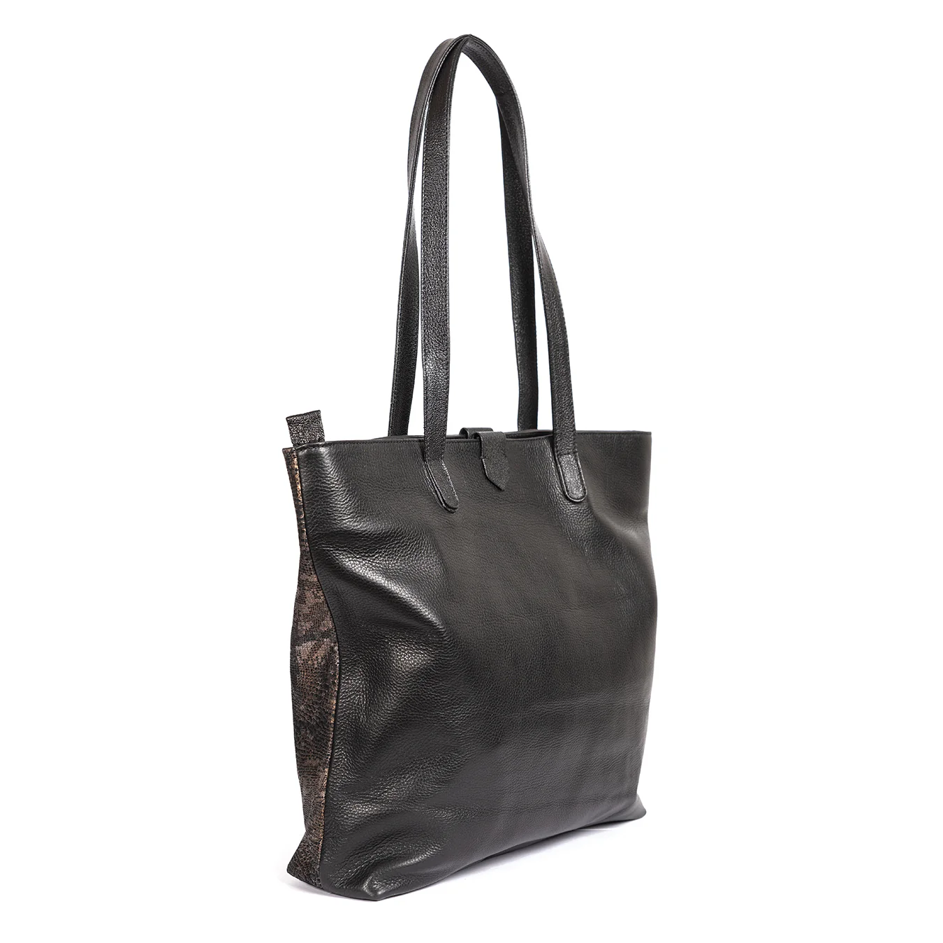 Awonke : Ladies Leather Shopper Handbag in Black Delta & Nero Rockafella
