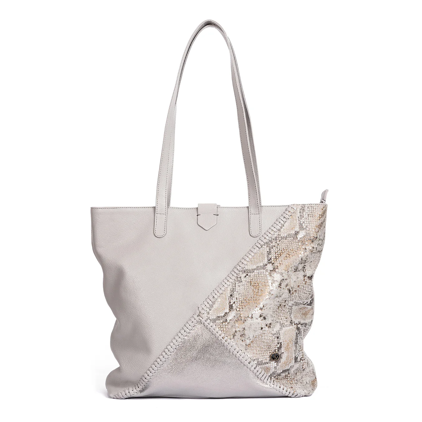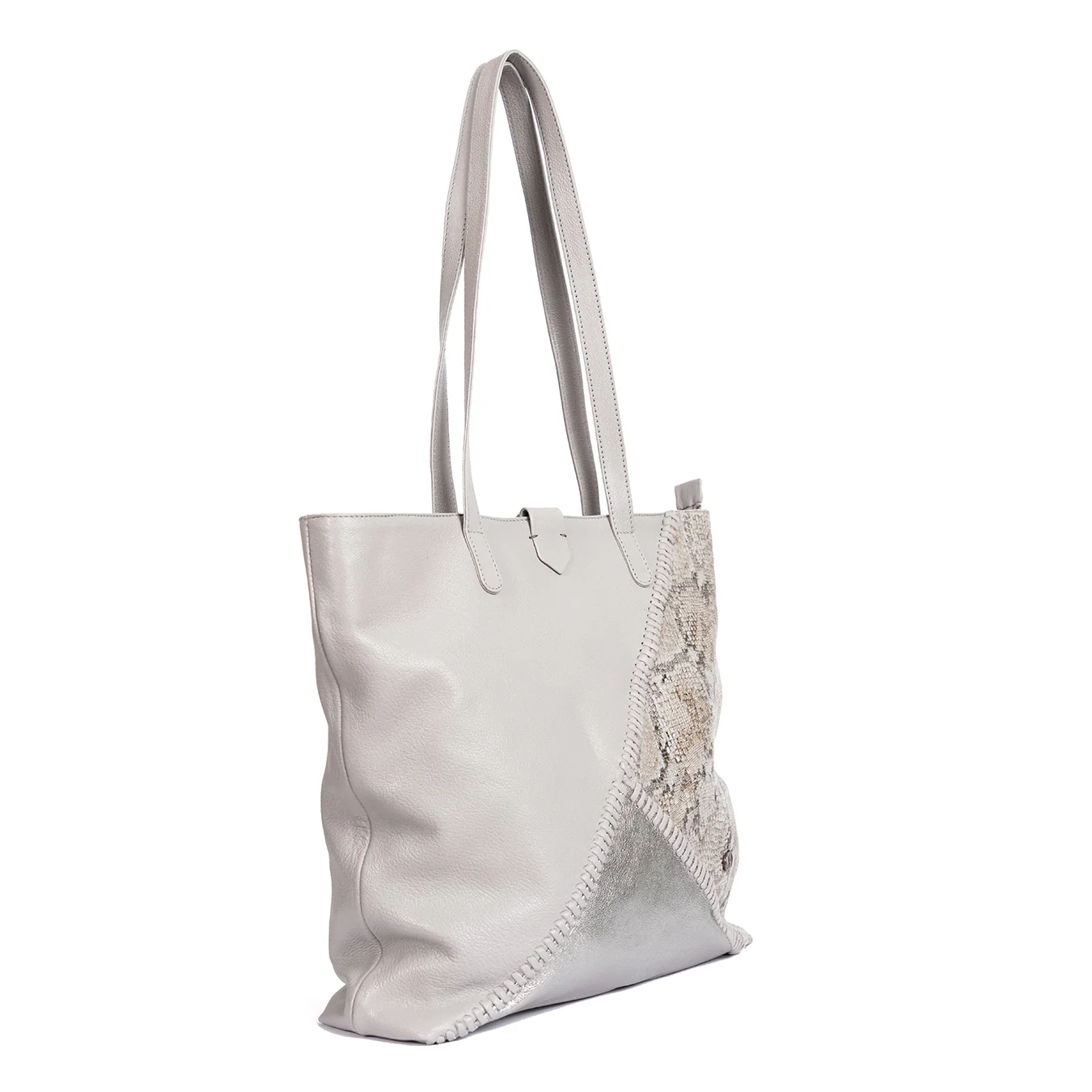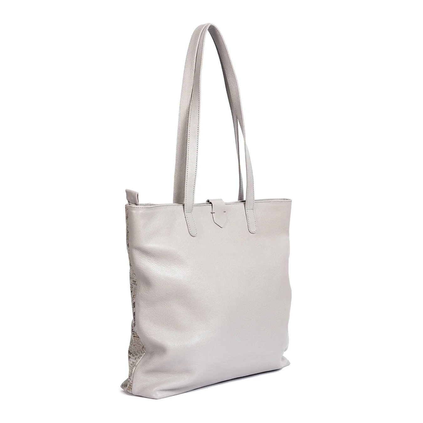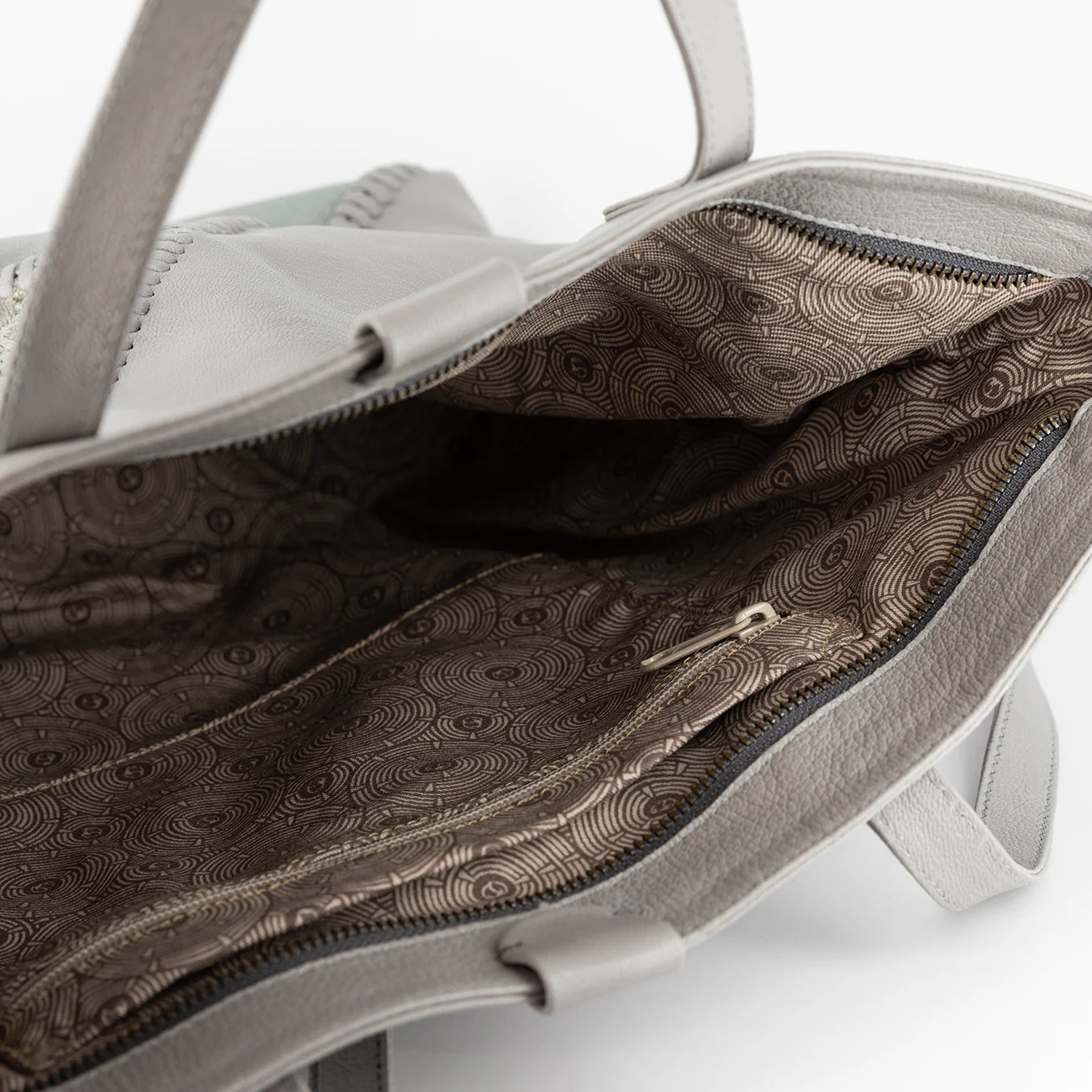 Awonke : Ladies Leather Shopper Handbag in Quarry Cayak, Tallio Grid & Opal Rockafella