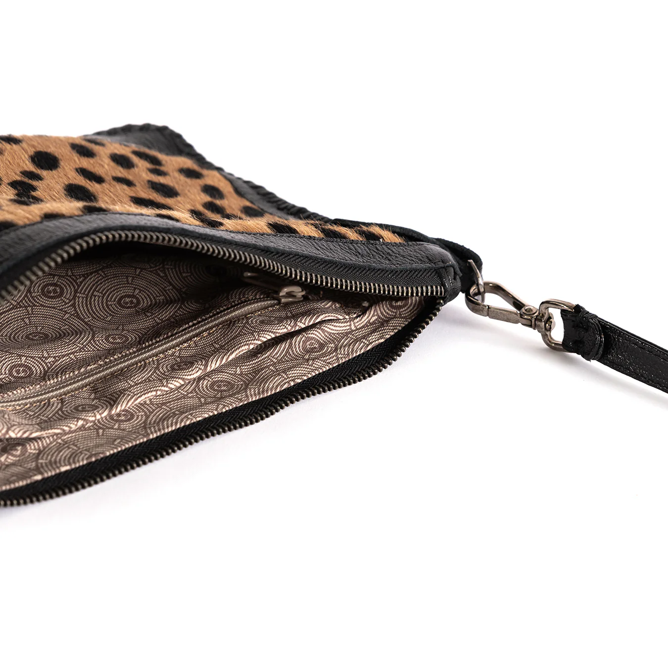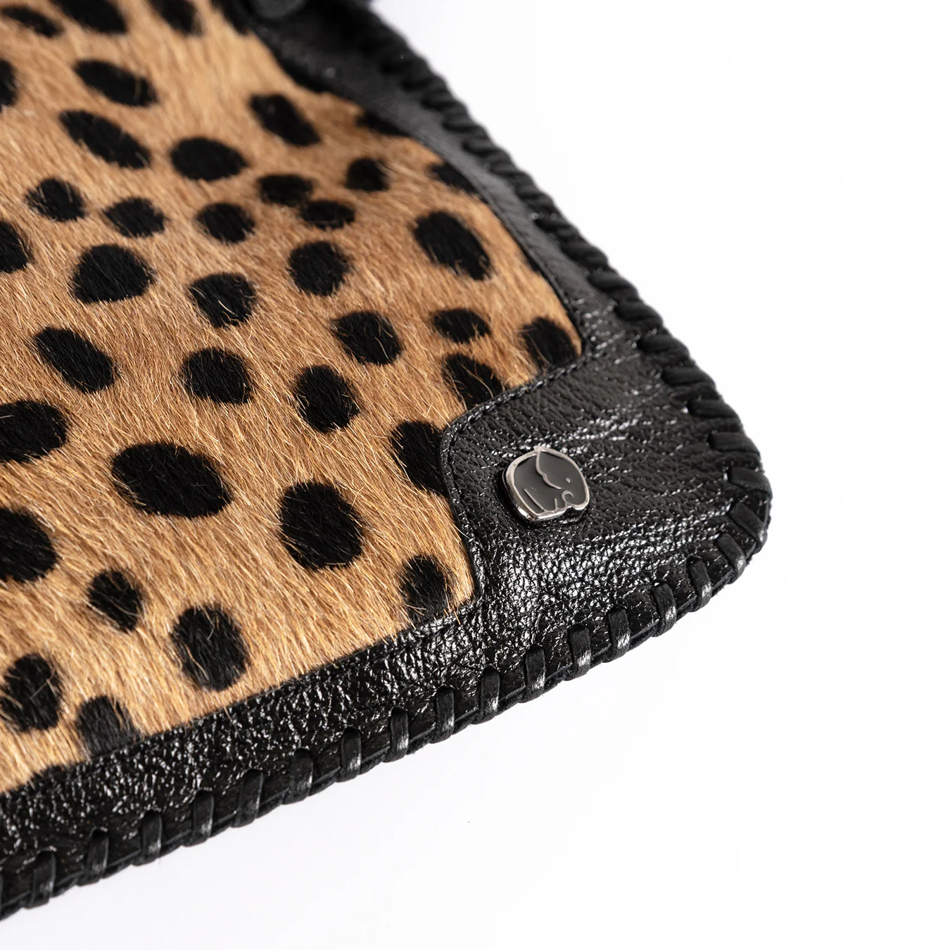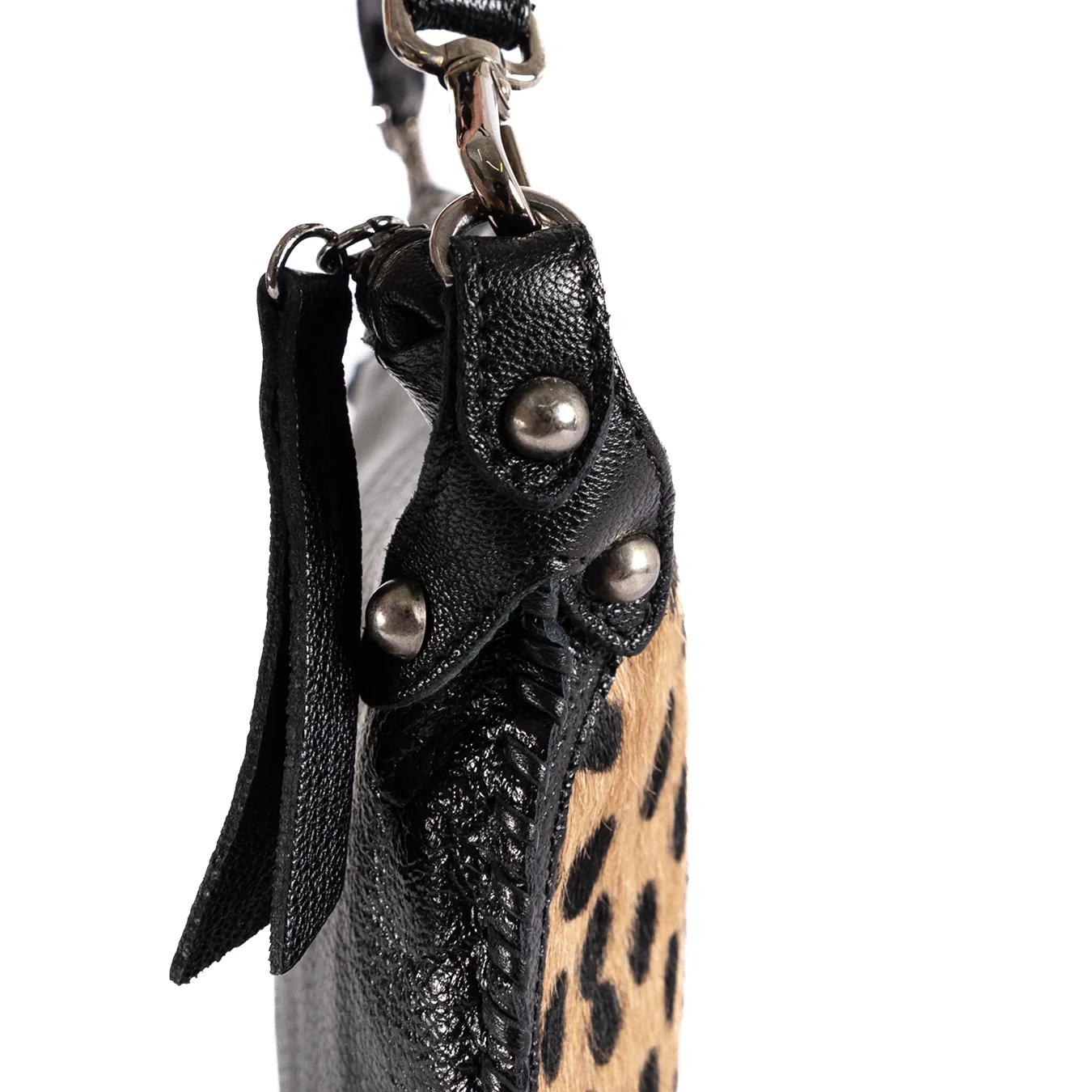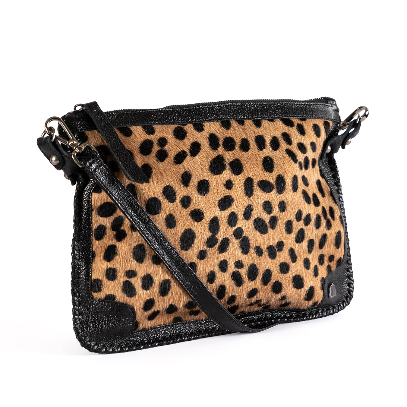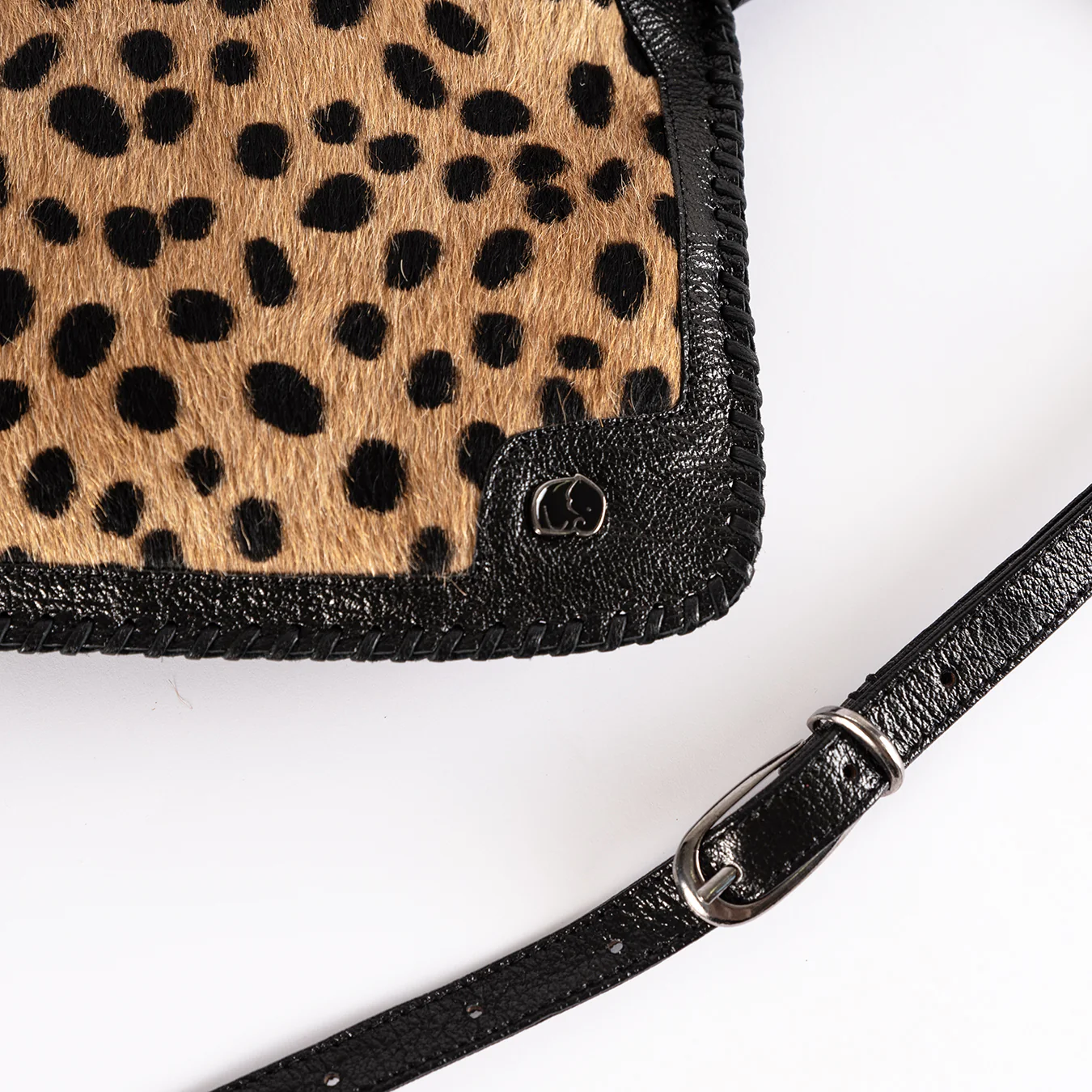 Maduva : Ladies Leather Crossbody Handbag in Spotted print & Black