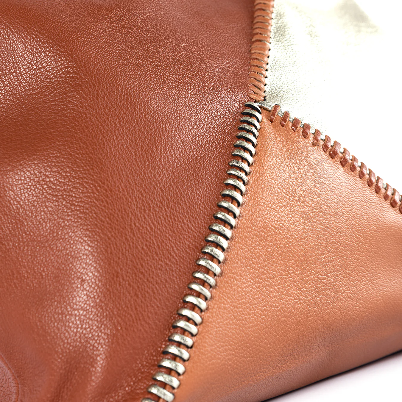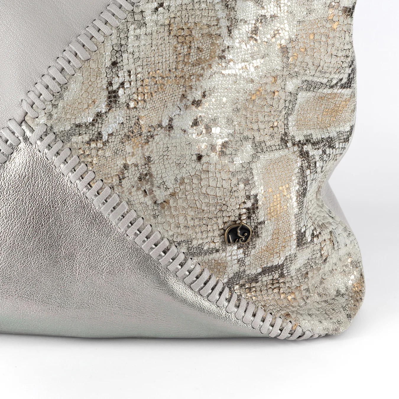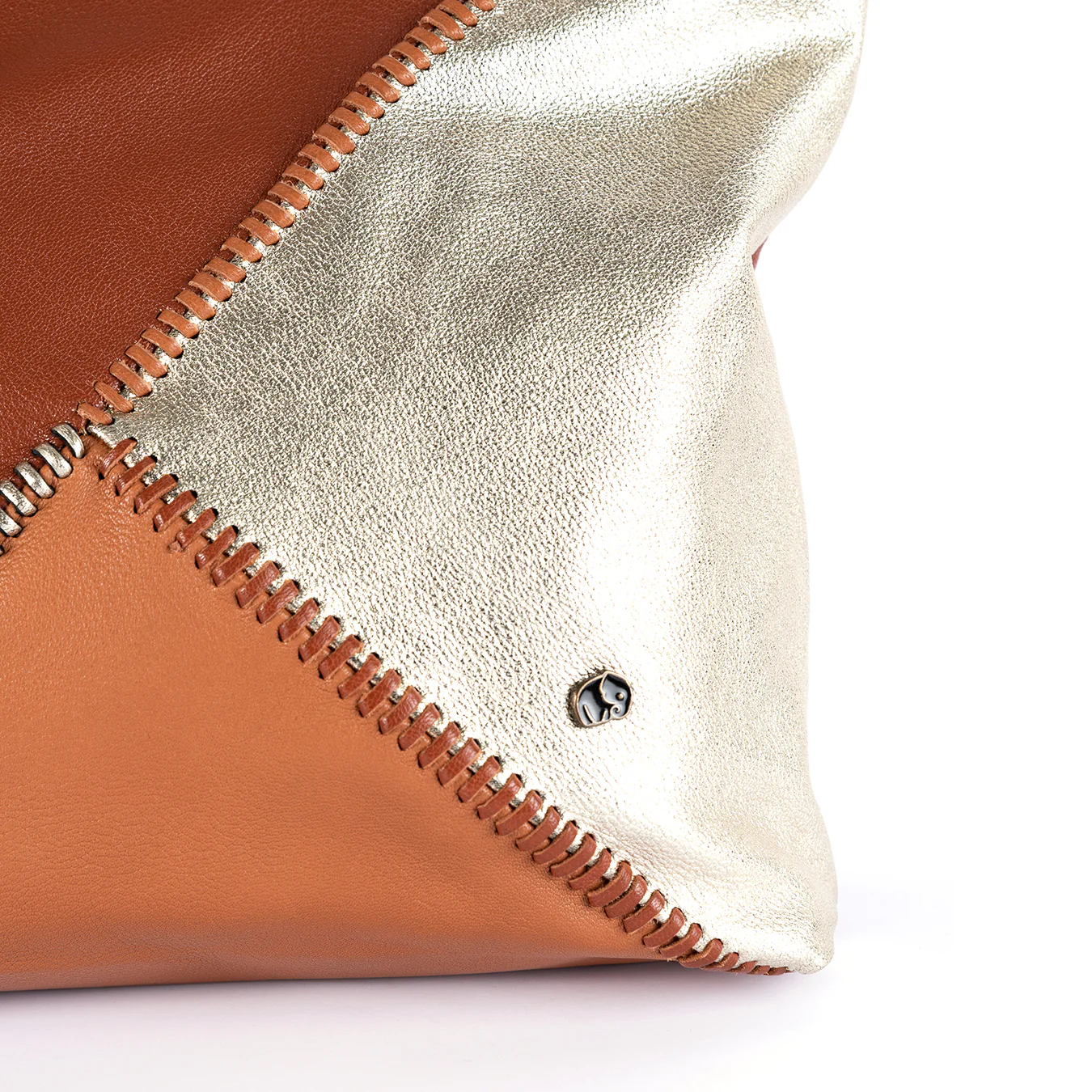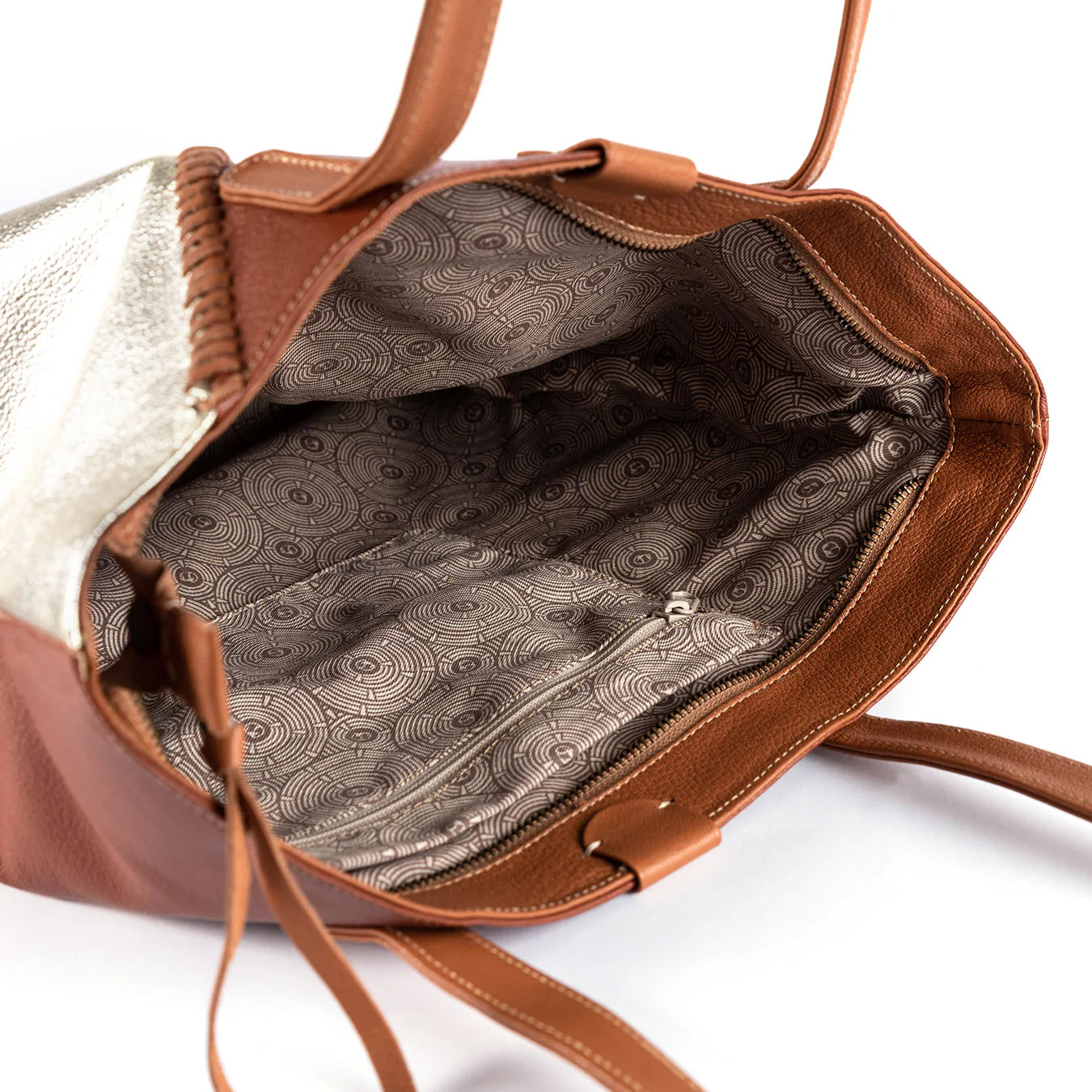 Awonke : Ladies Leather Shopper Handbag in Suede & Oak Cayak and Platino Metal Grain