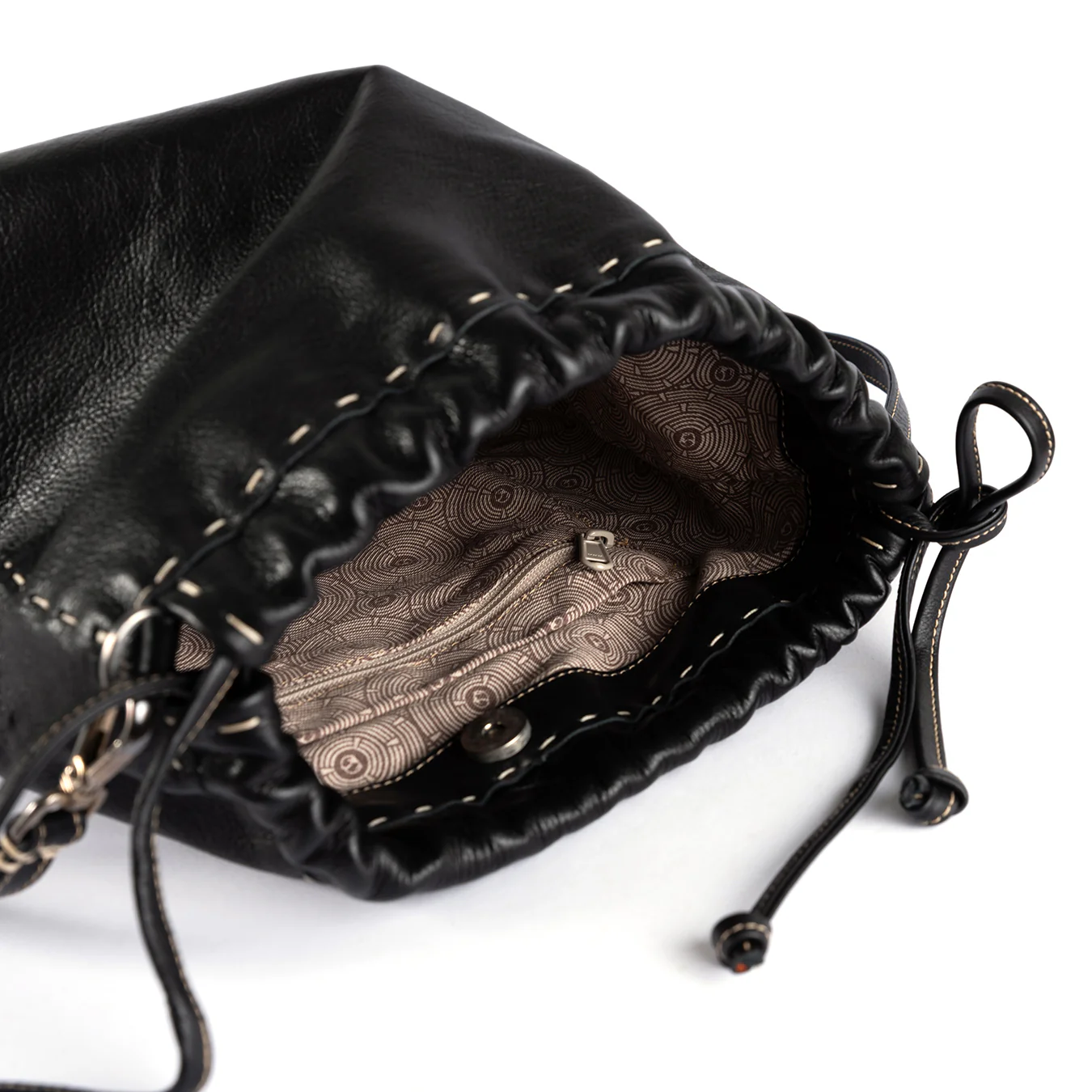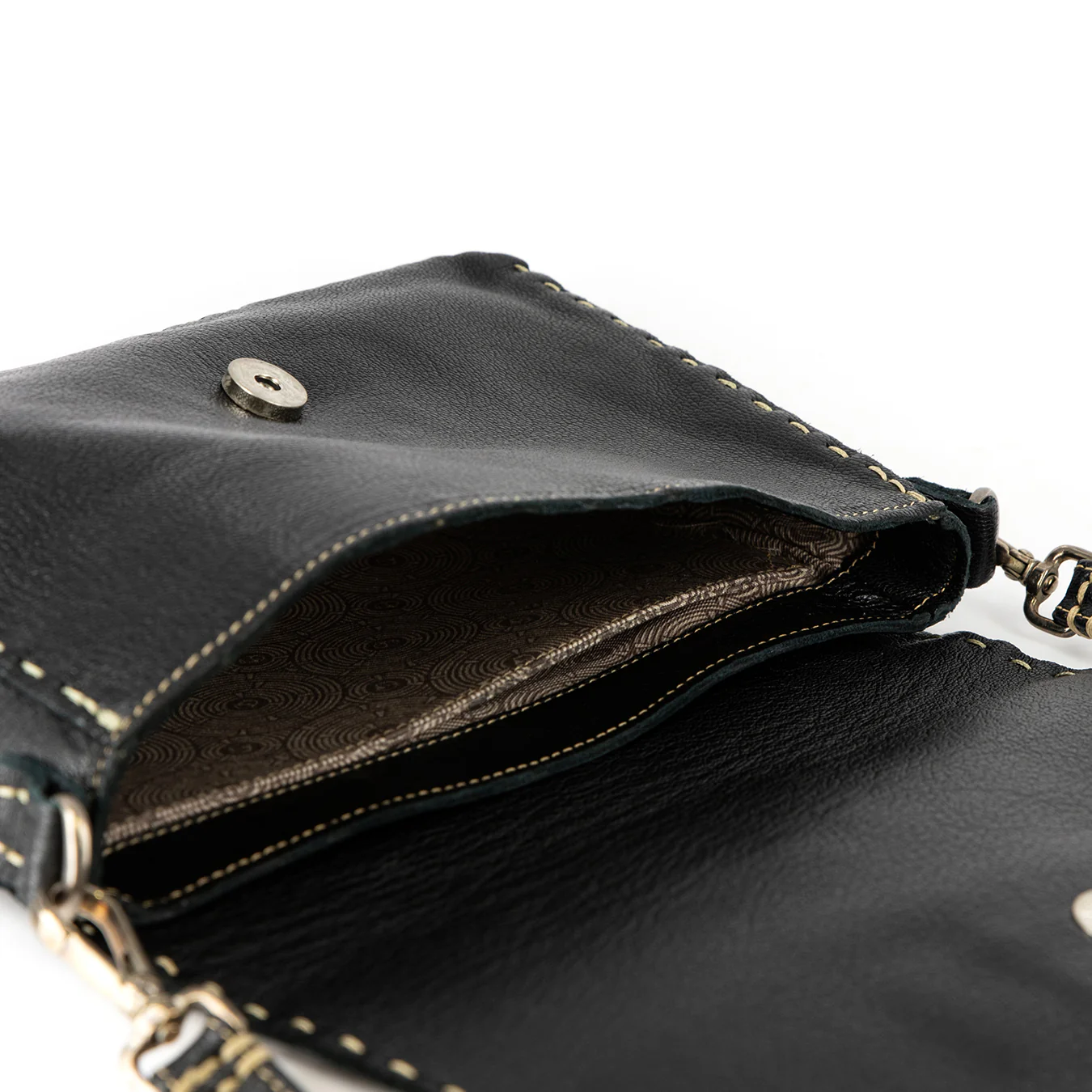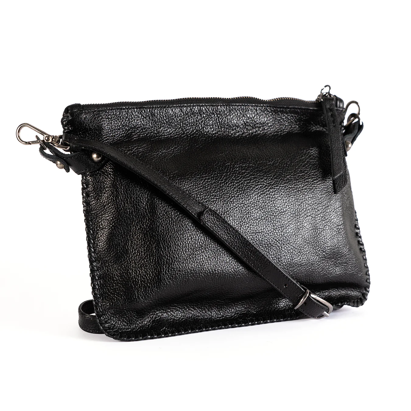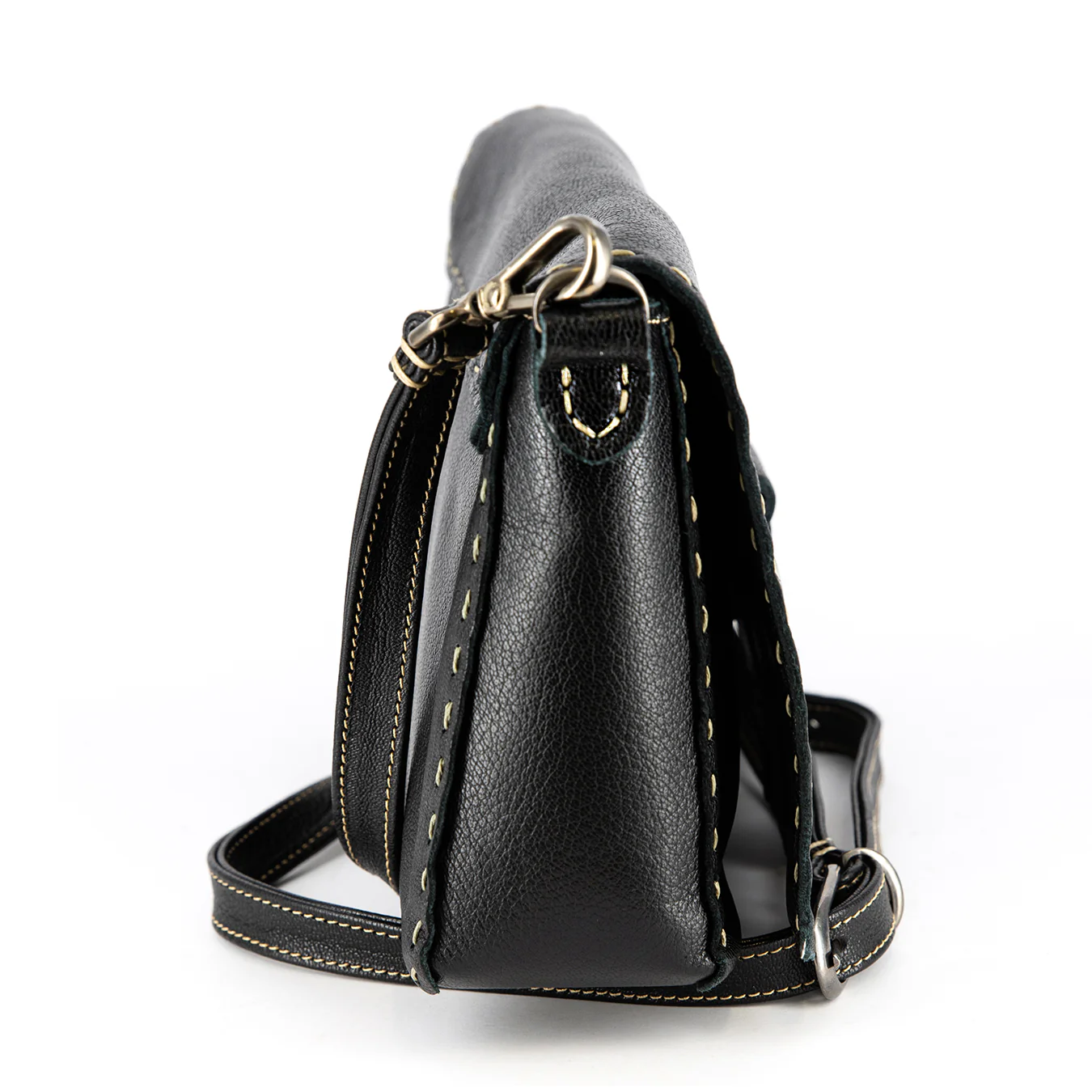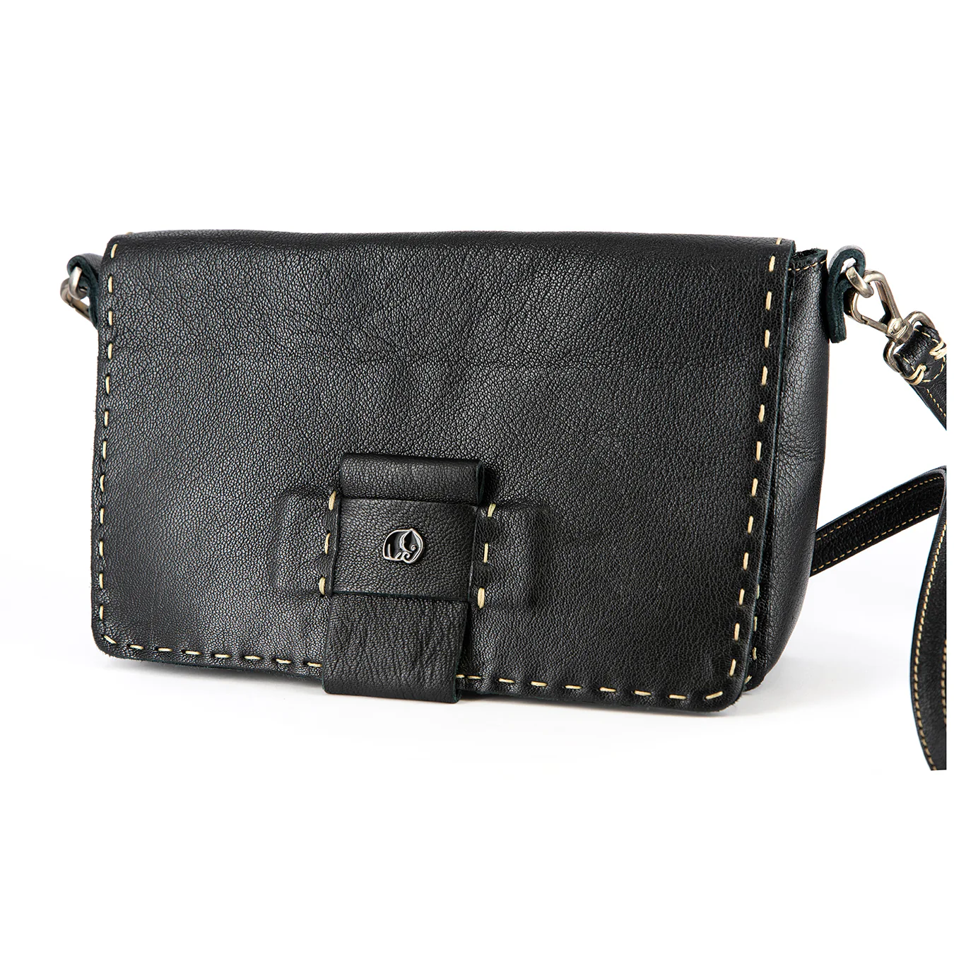 Liana : Ladies Leather Crossbody Handbag in Black Cayak