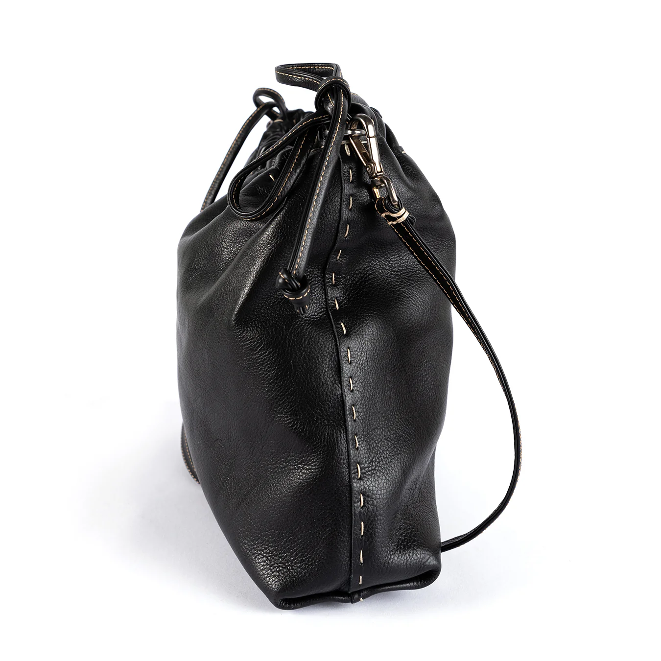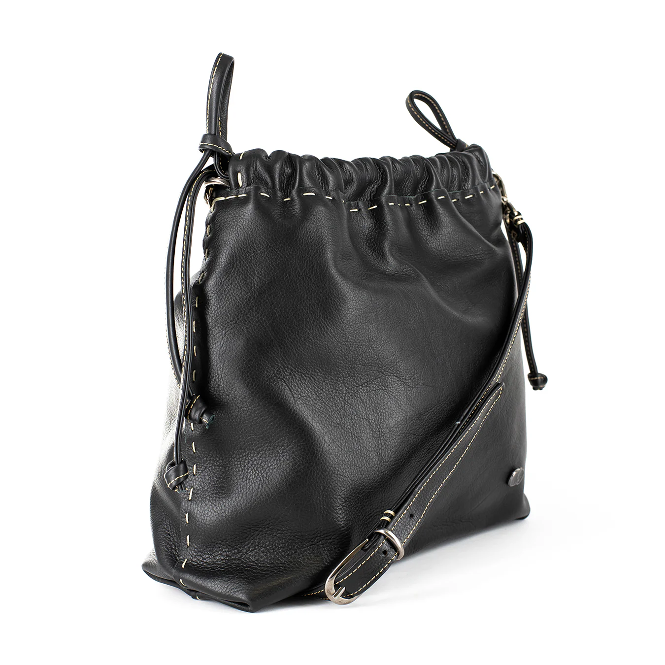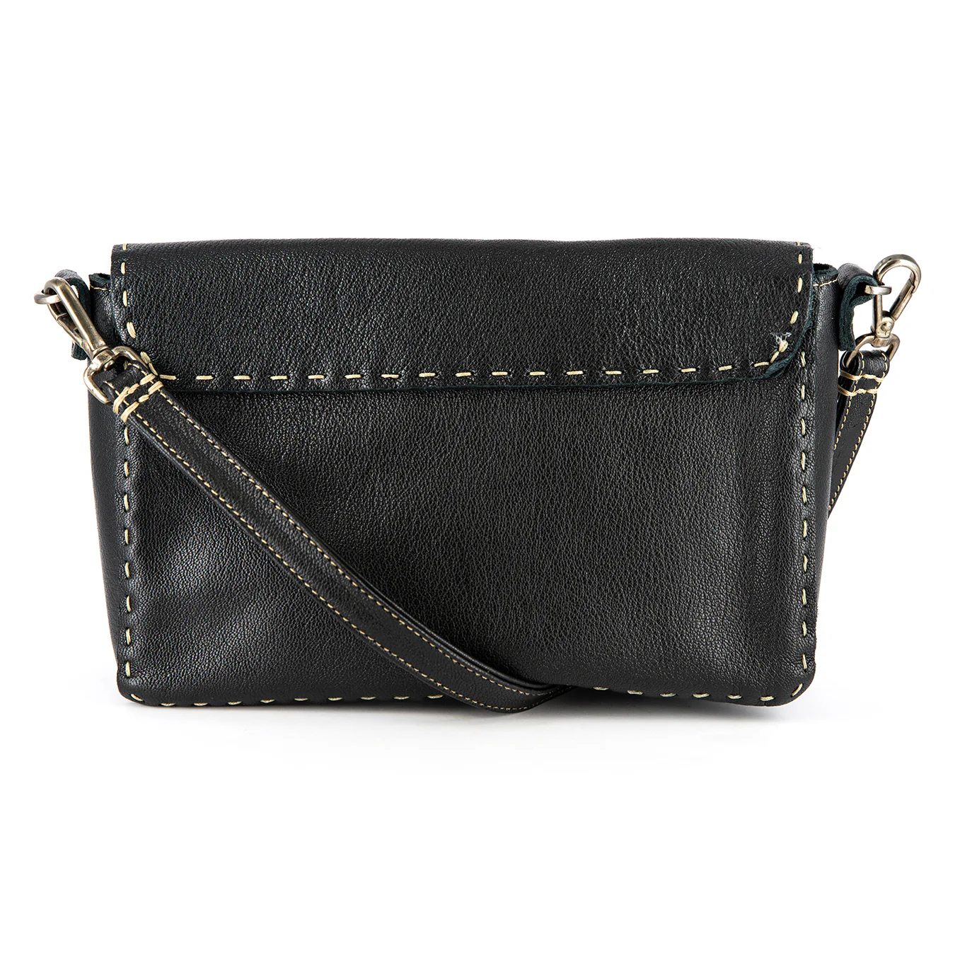 Rossa : Ladies Leather Crossbody Handbag in Black Delta