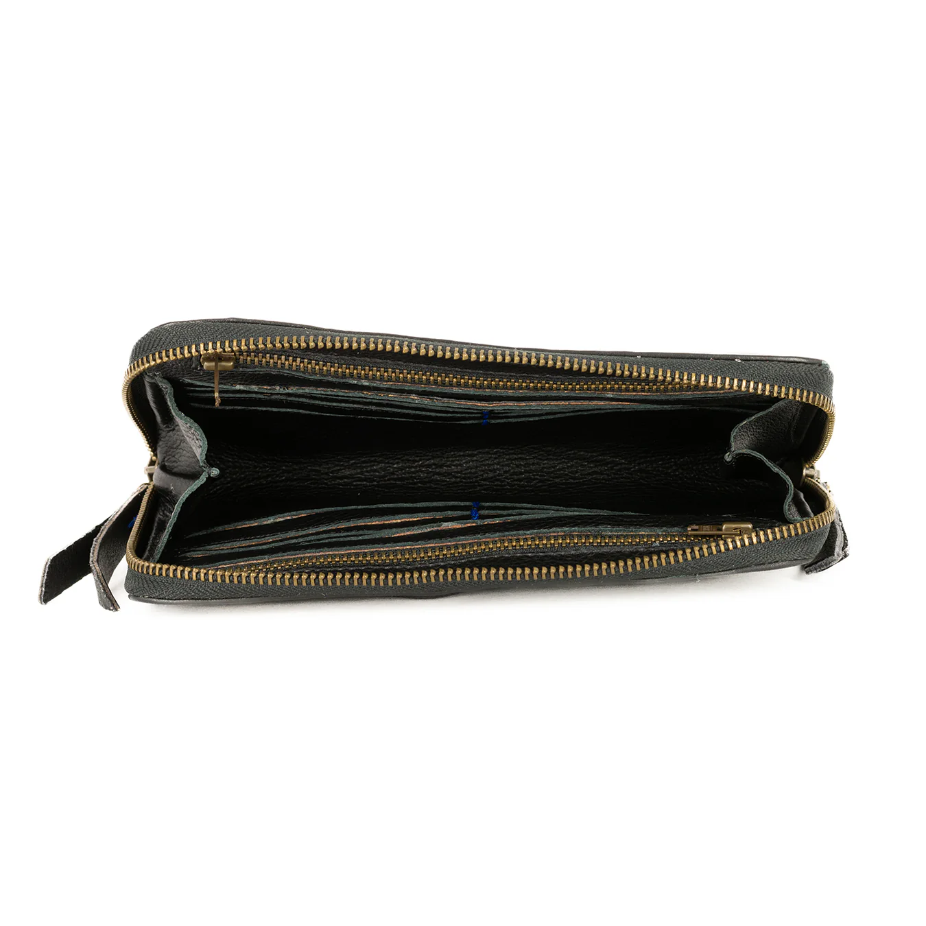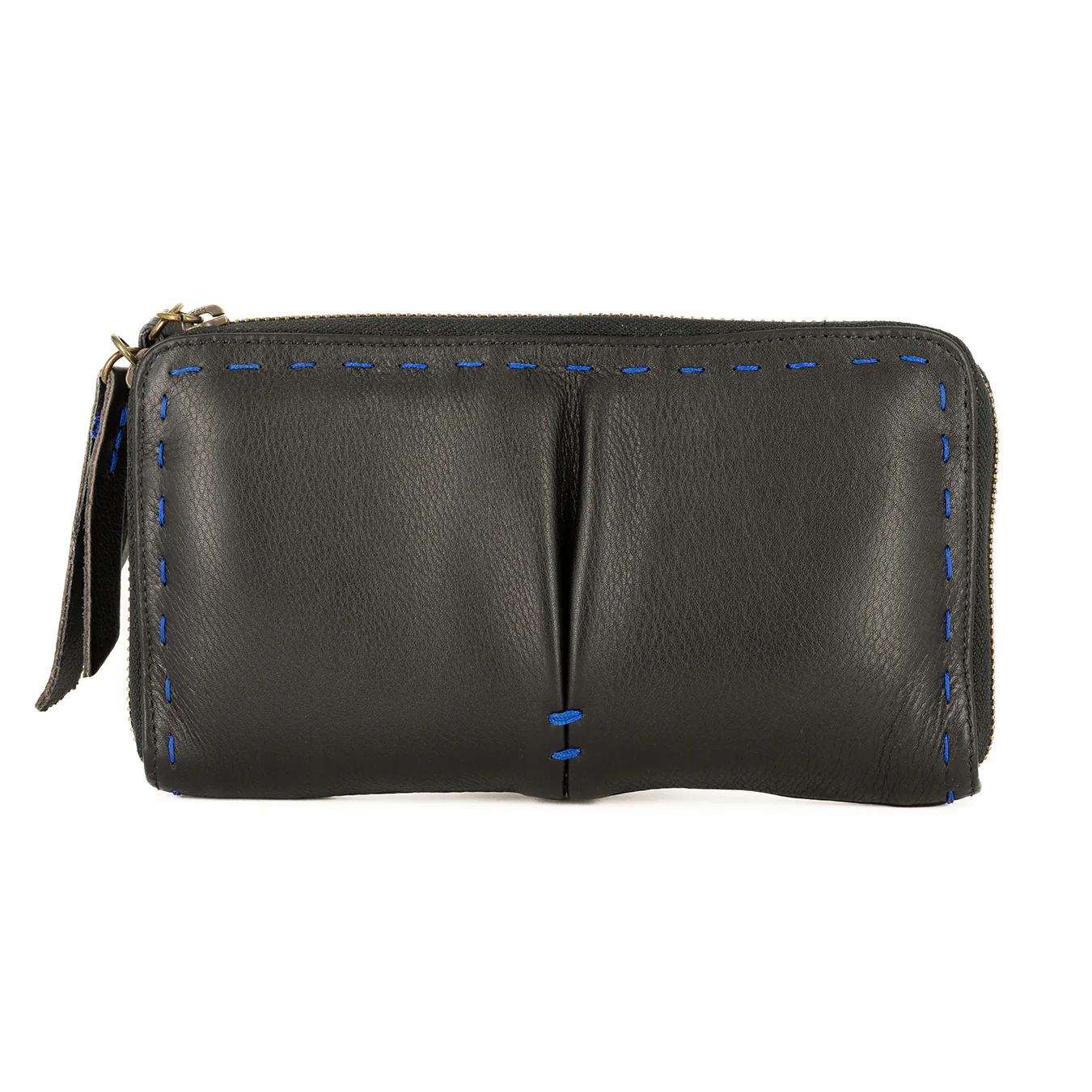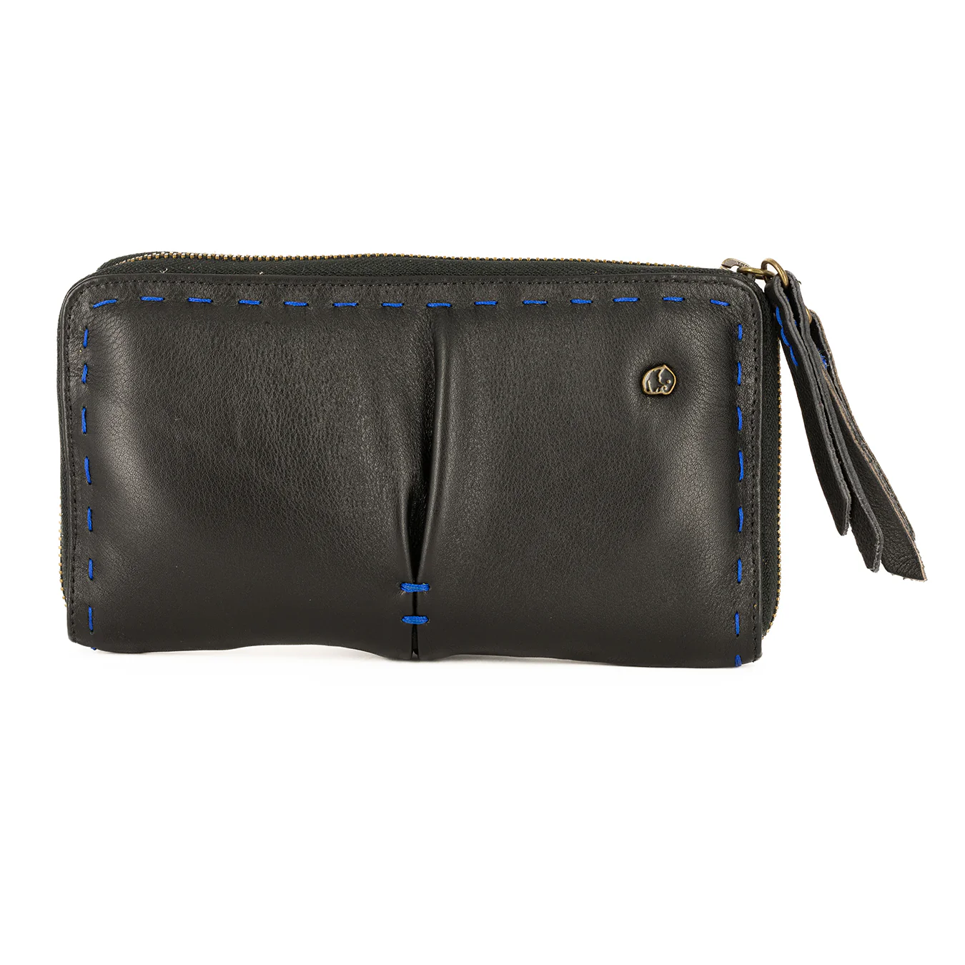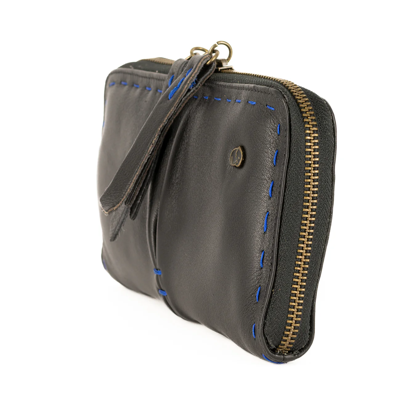 Olwethu : Ladies Leather Clutch Purse in Black Delta