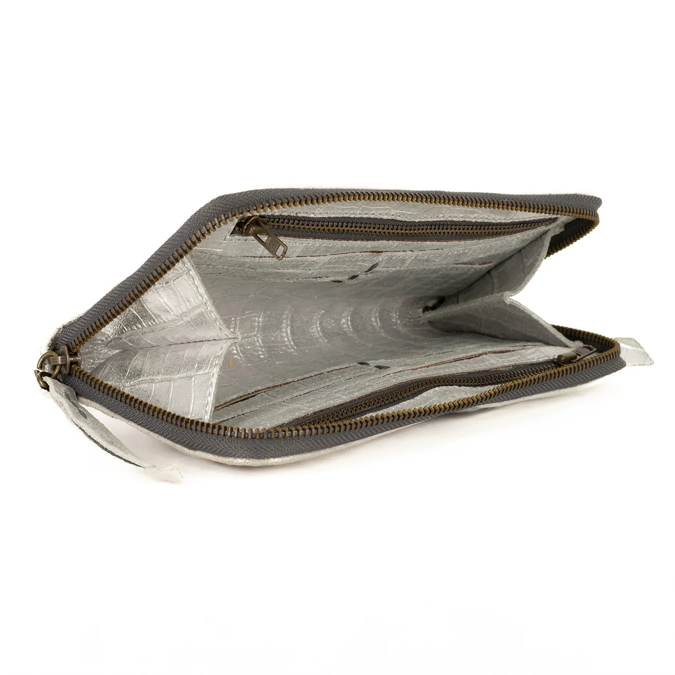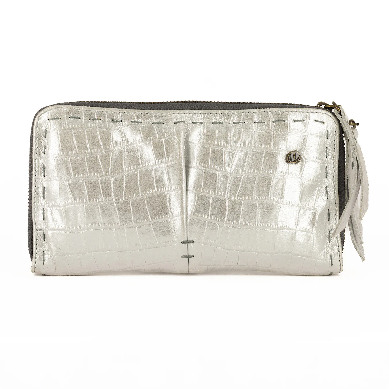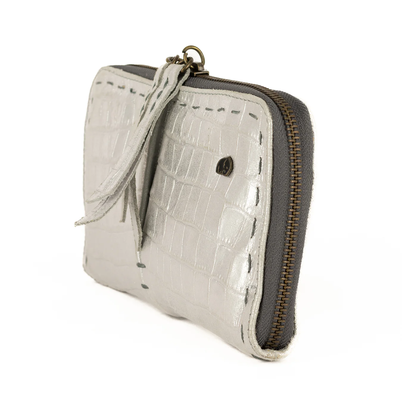 Olwethu : Ladies Leather Clutch Purse in Steel Brio