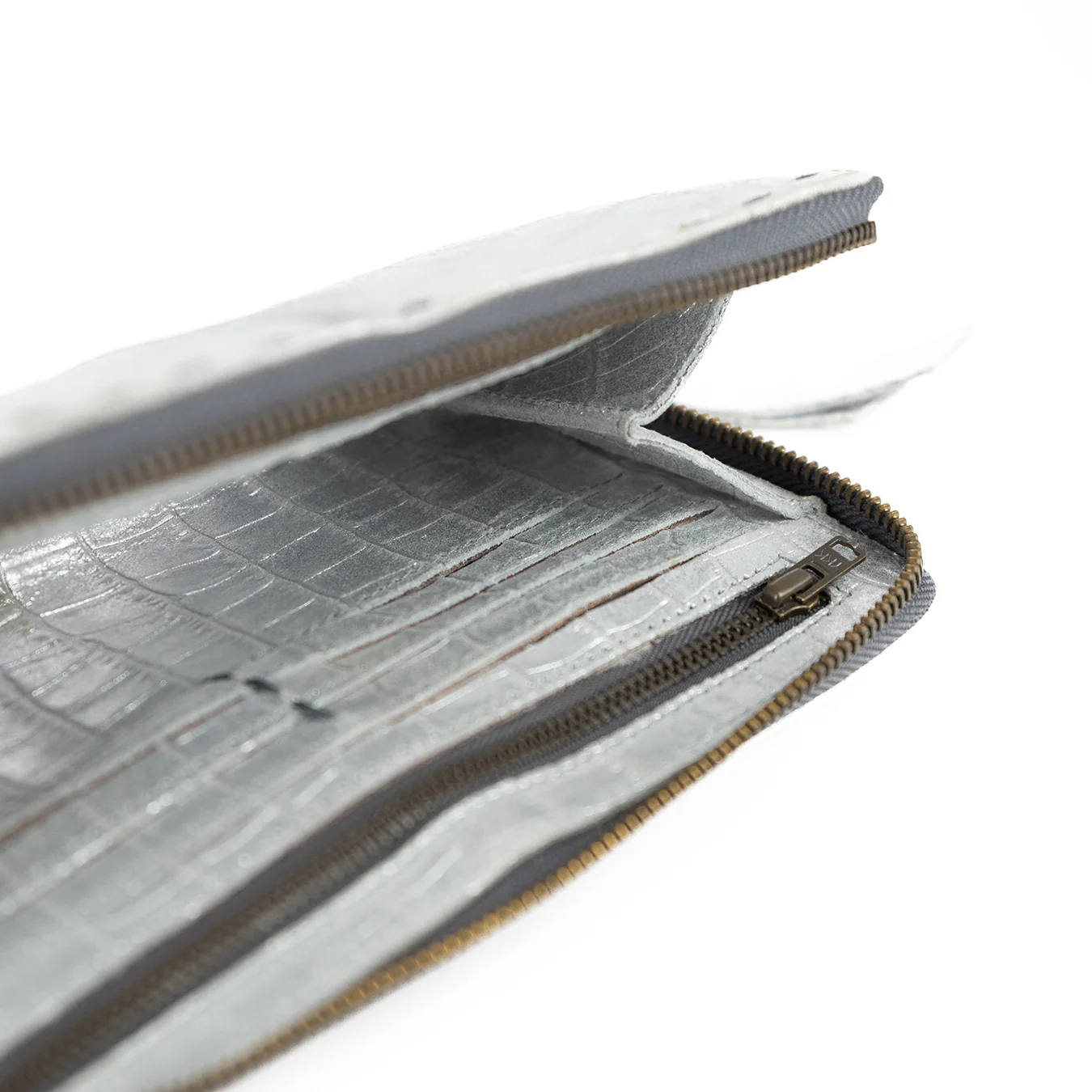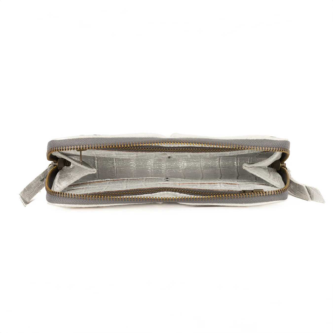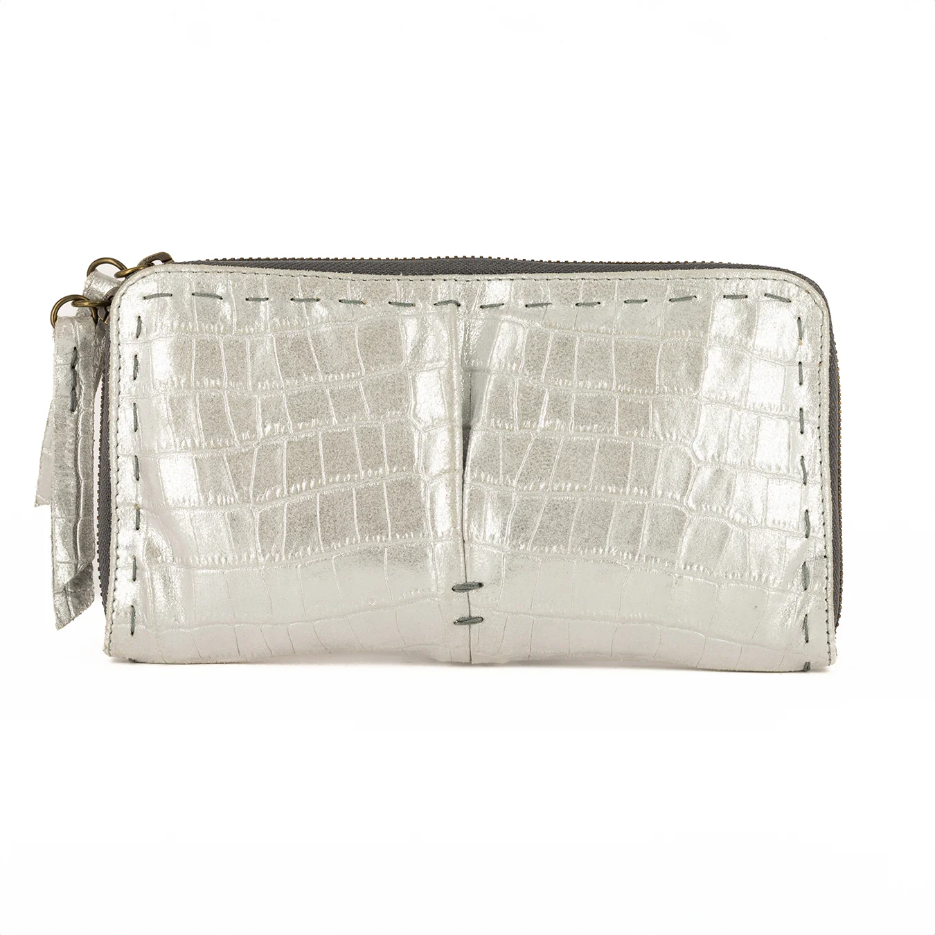 Olwethu : Ladies Leather Clutch Purse in Steel Brio