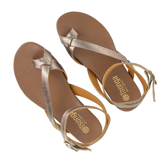 Zangwa : Ladies Leather Sandal in Platino