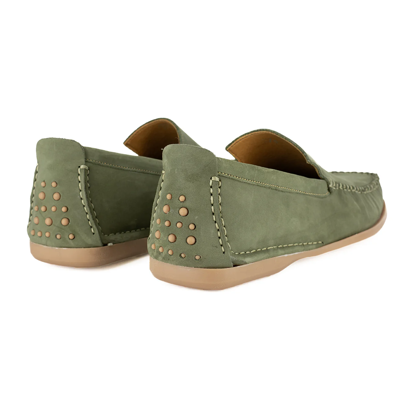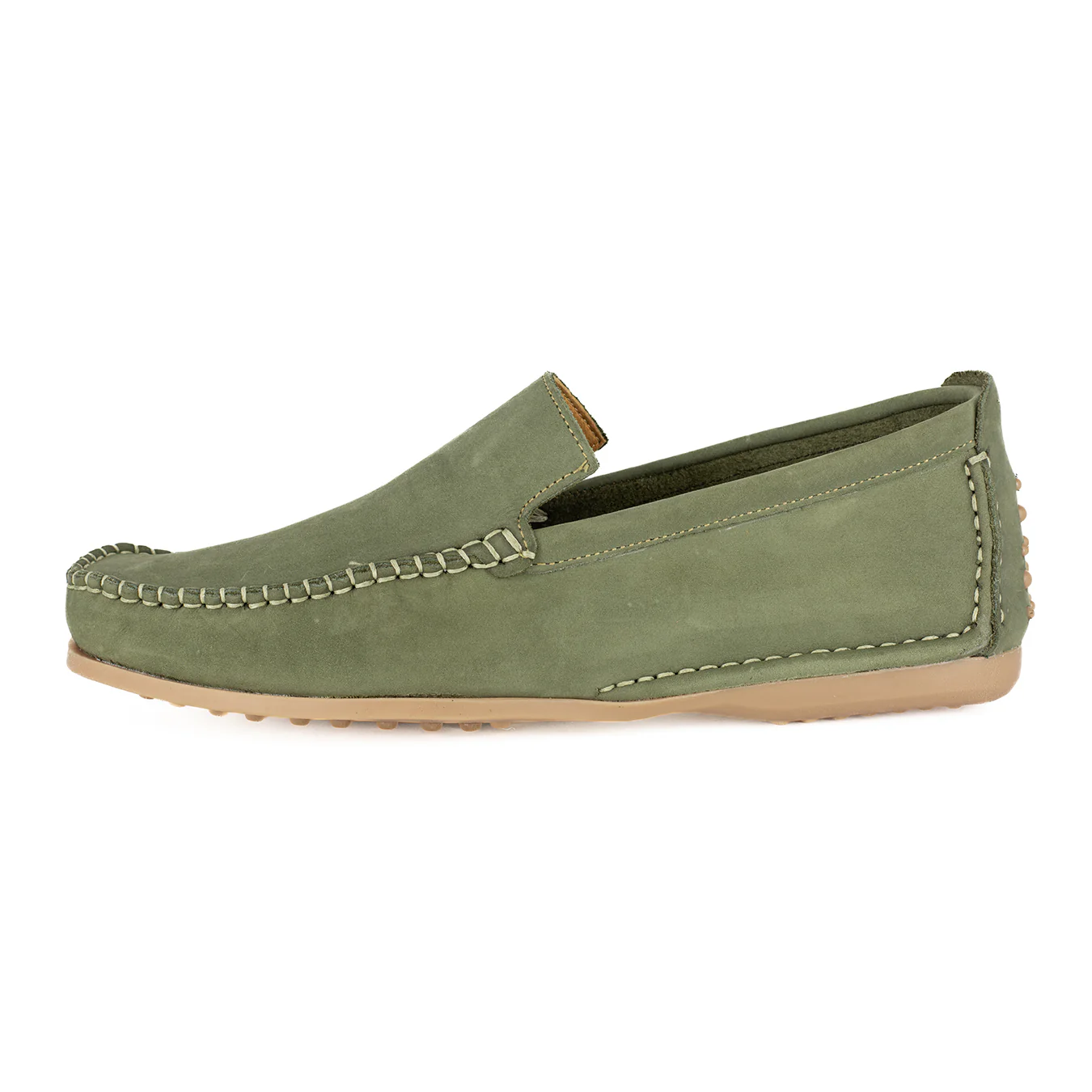 Kinshasa : Mens Leather Moccasin in Olive Bilbao Velutto