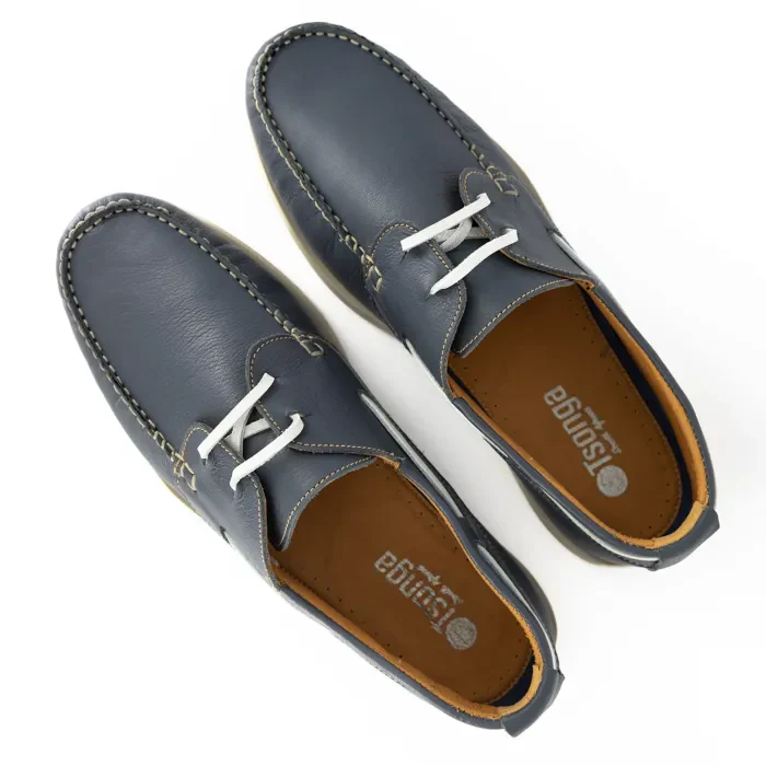 Malabo : Mens Leather Boat Shoe in Marine Natan
