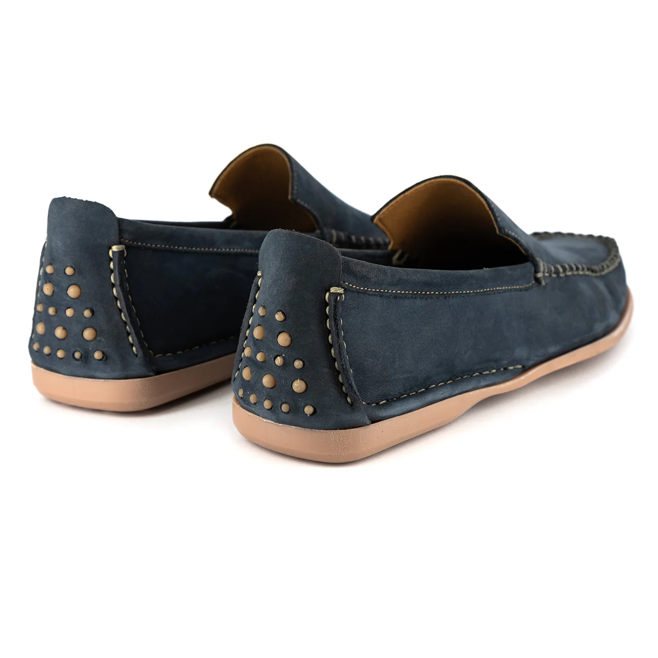 Othile : Men's Leather Moccasin in Marine Nubuck