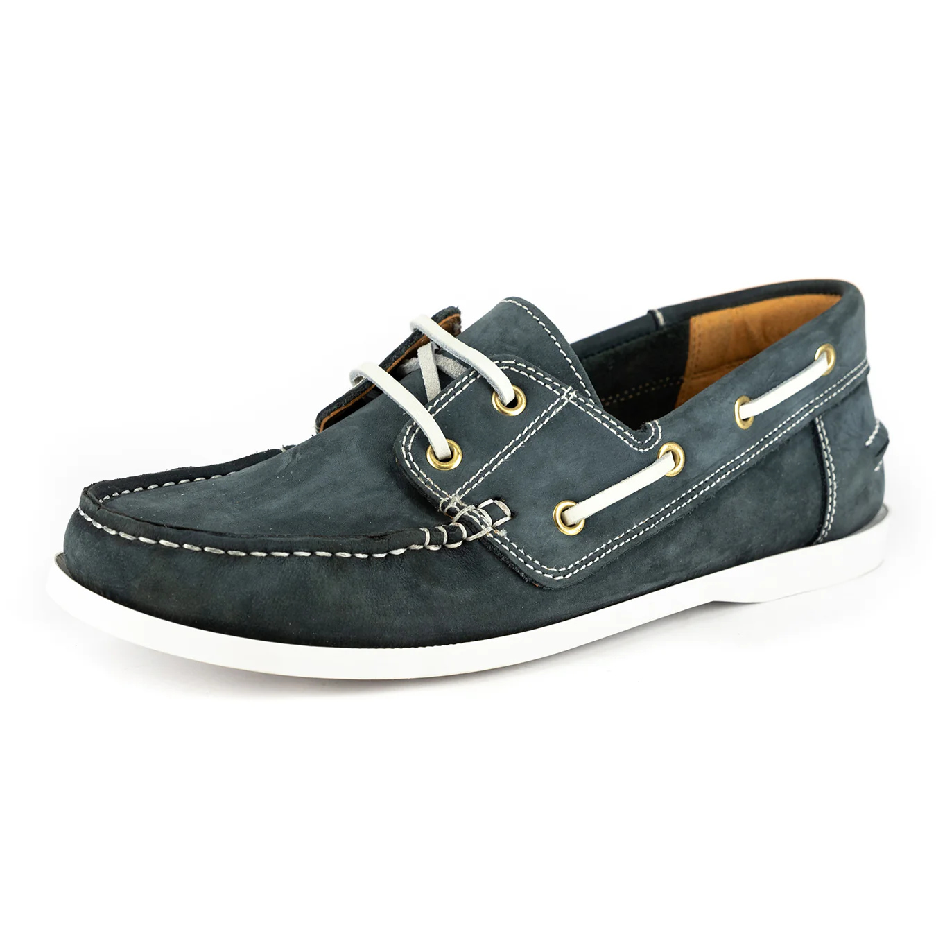 Exwaya : Mens Leather Boat Shoe in Marine Nubuck