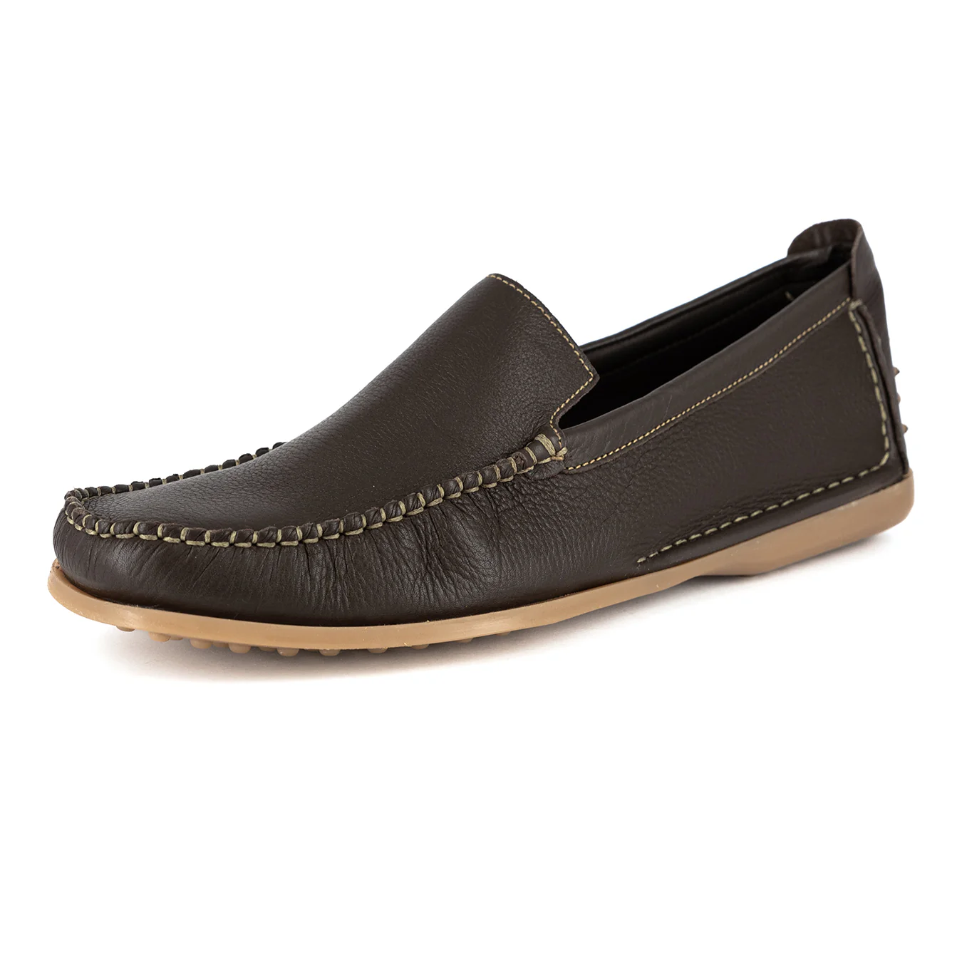 Thami : Mens Leather Boat Shoe in Brown Carvano