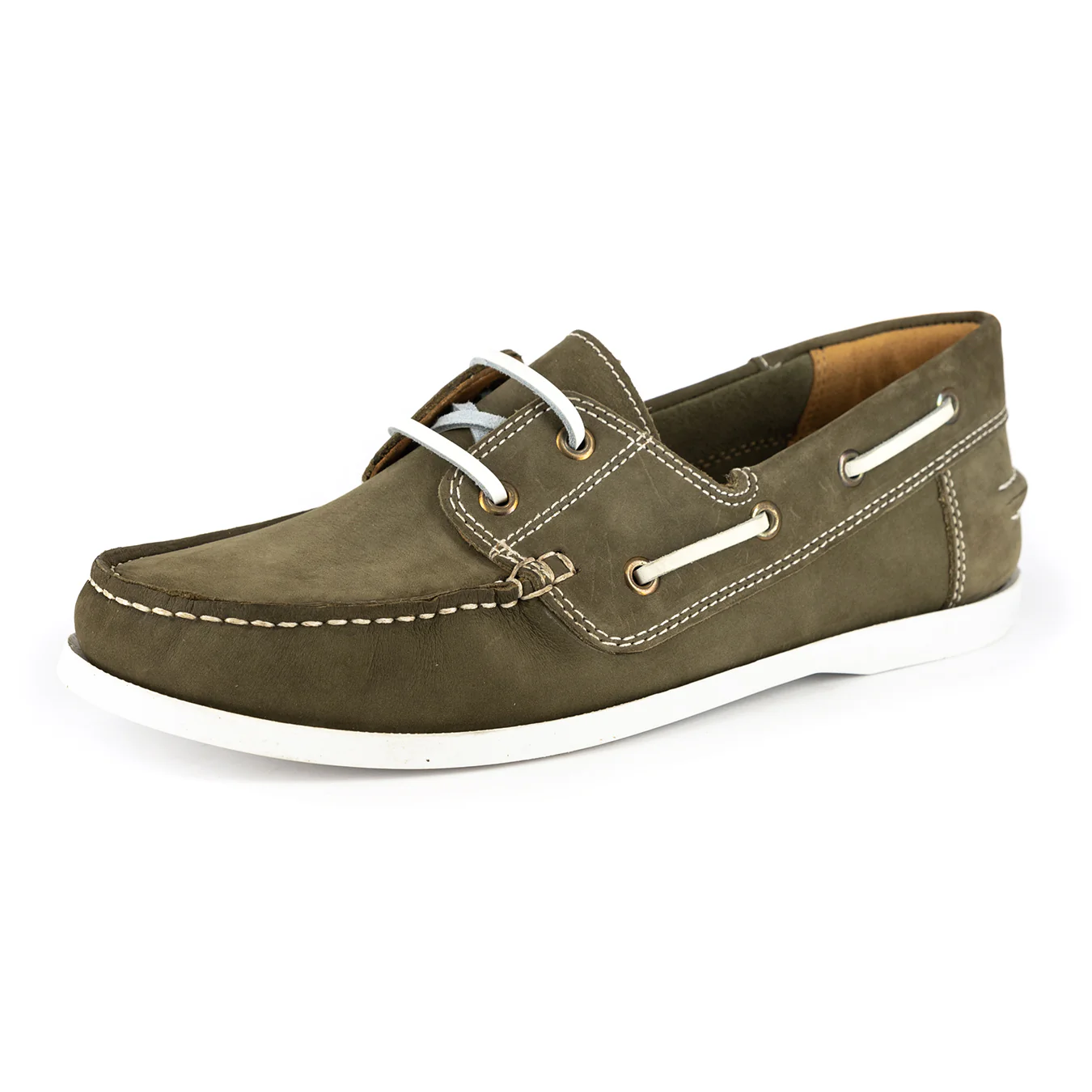 Exwaya : Mens Leather Boat Shoe in Olive Nubuck