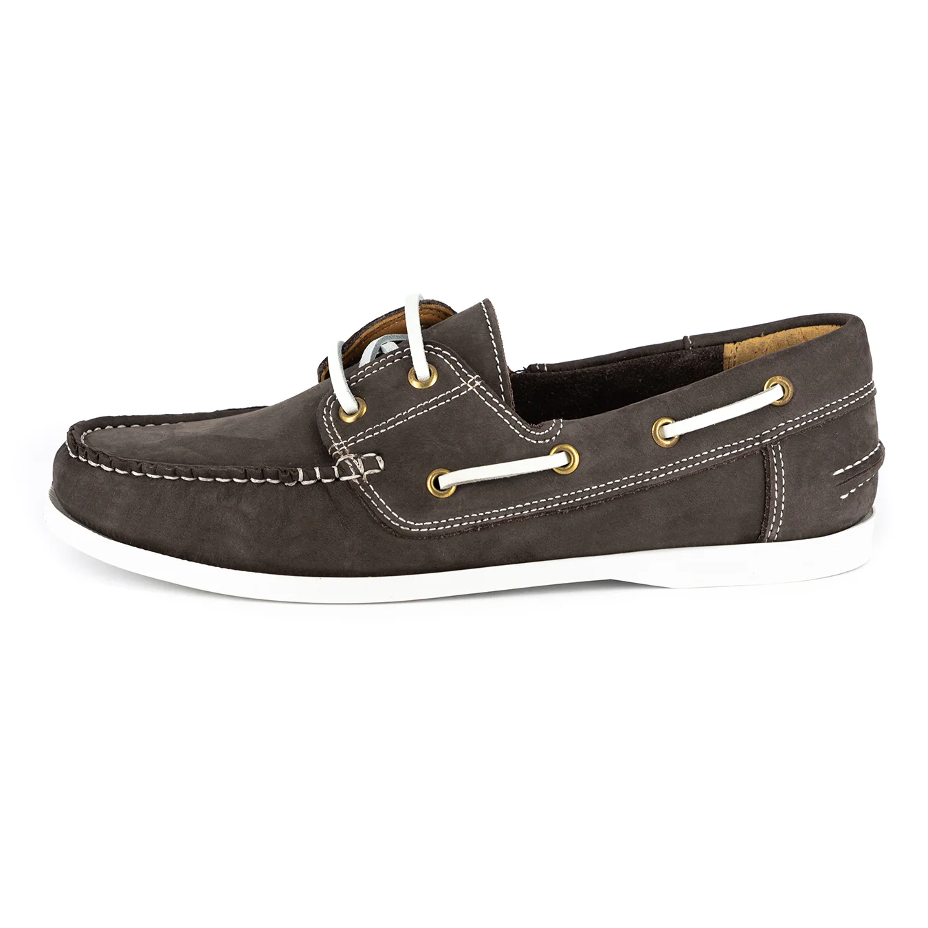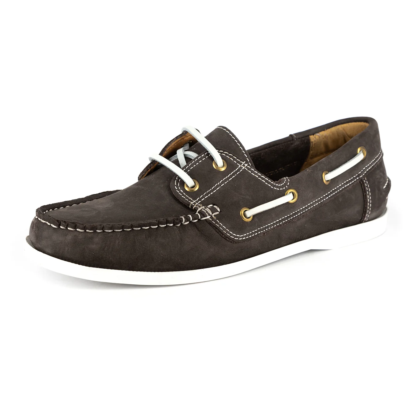 Exwaya : Mens Leather Boat Shoe in Choc Nubuck
