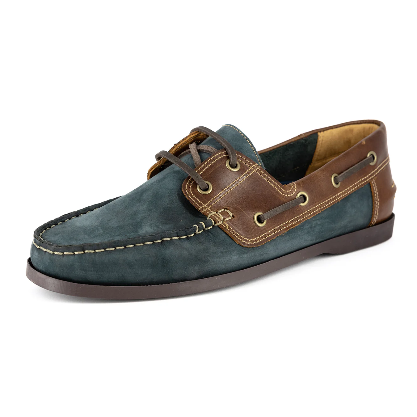 Exwaya : Mens Leather Boat Shoe in Marine Nubuck & Brown Carvano