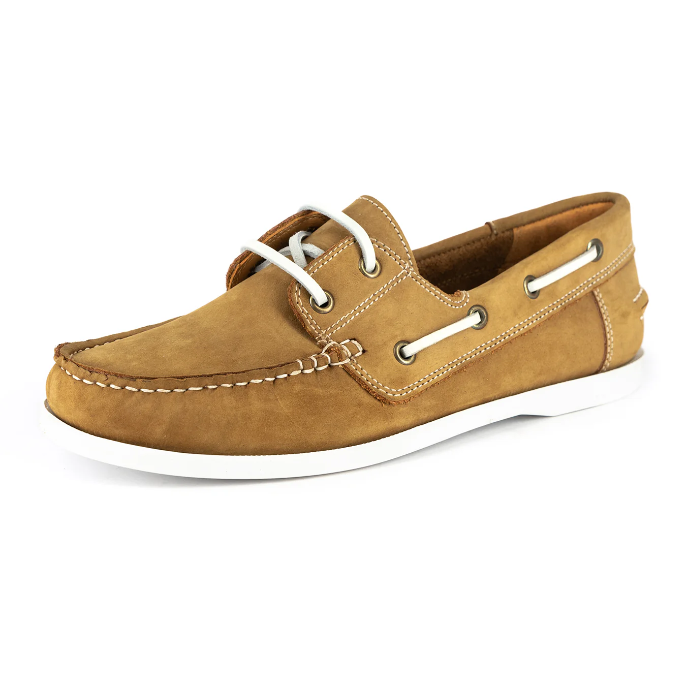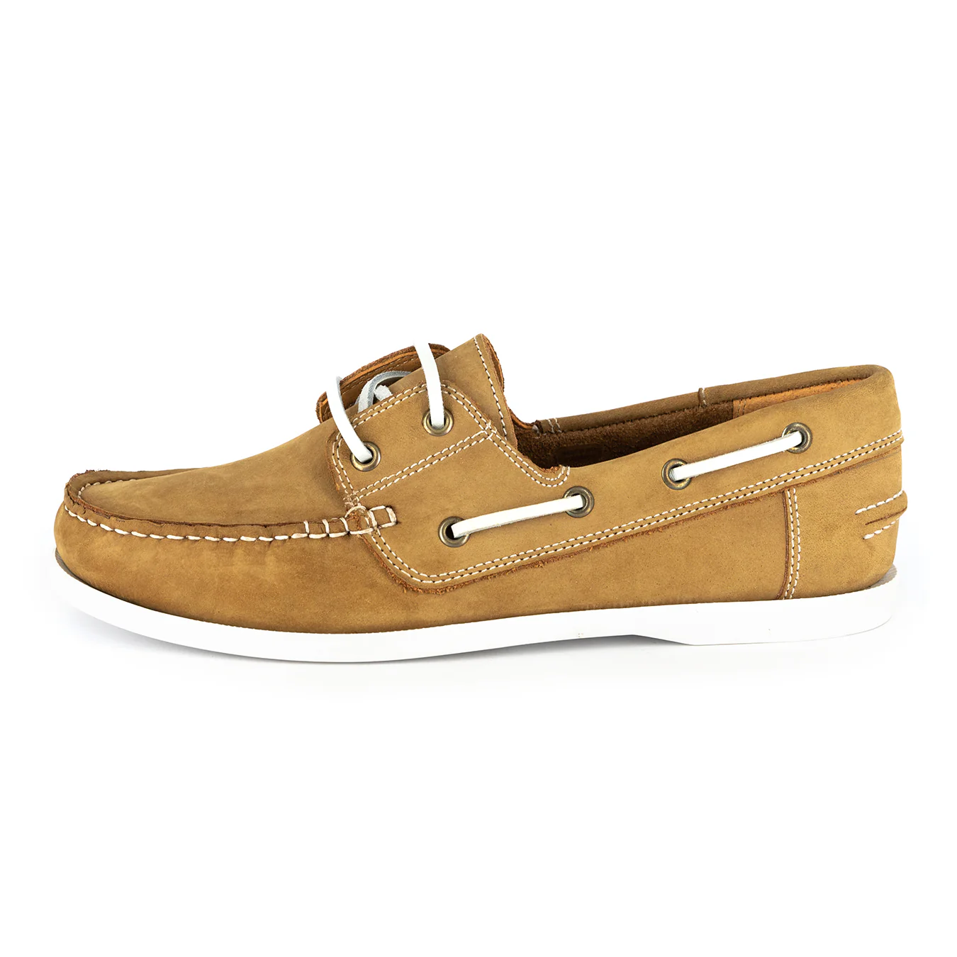 Exwaya : Mens Leather Boat Shoe in Tan Nubuck