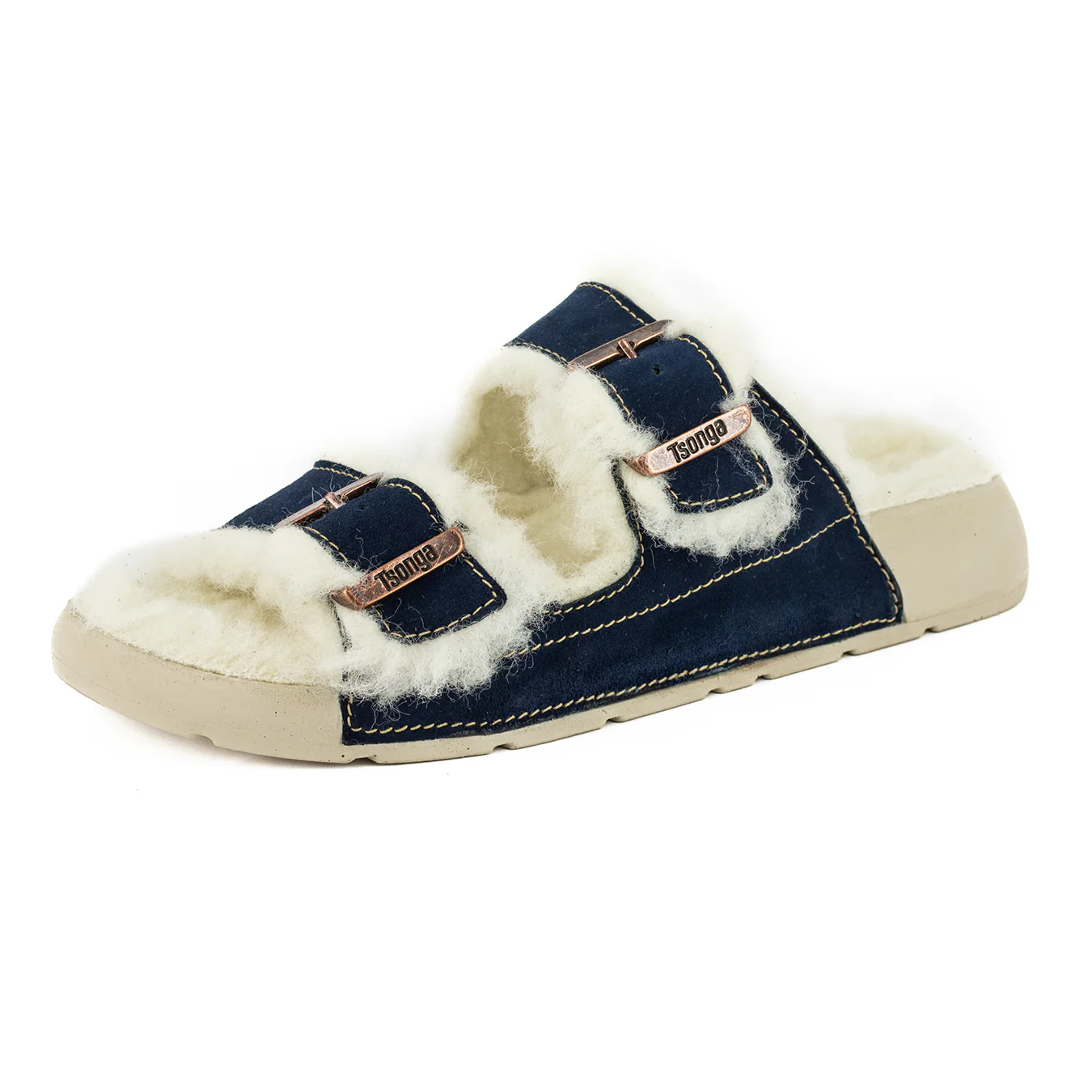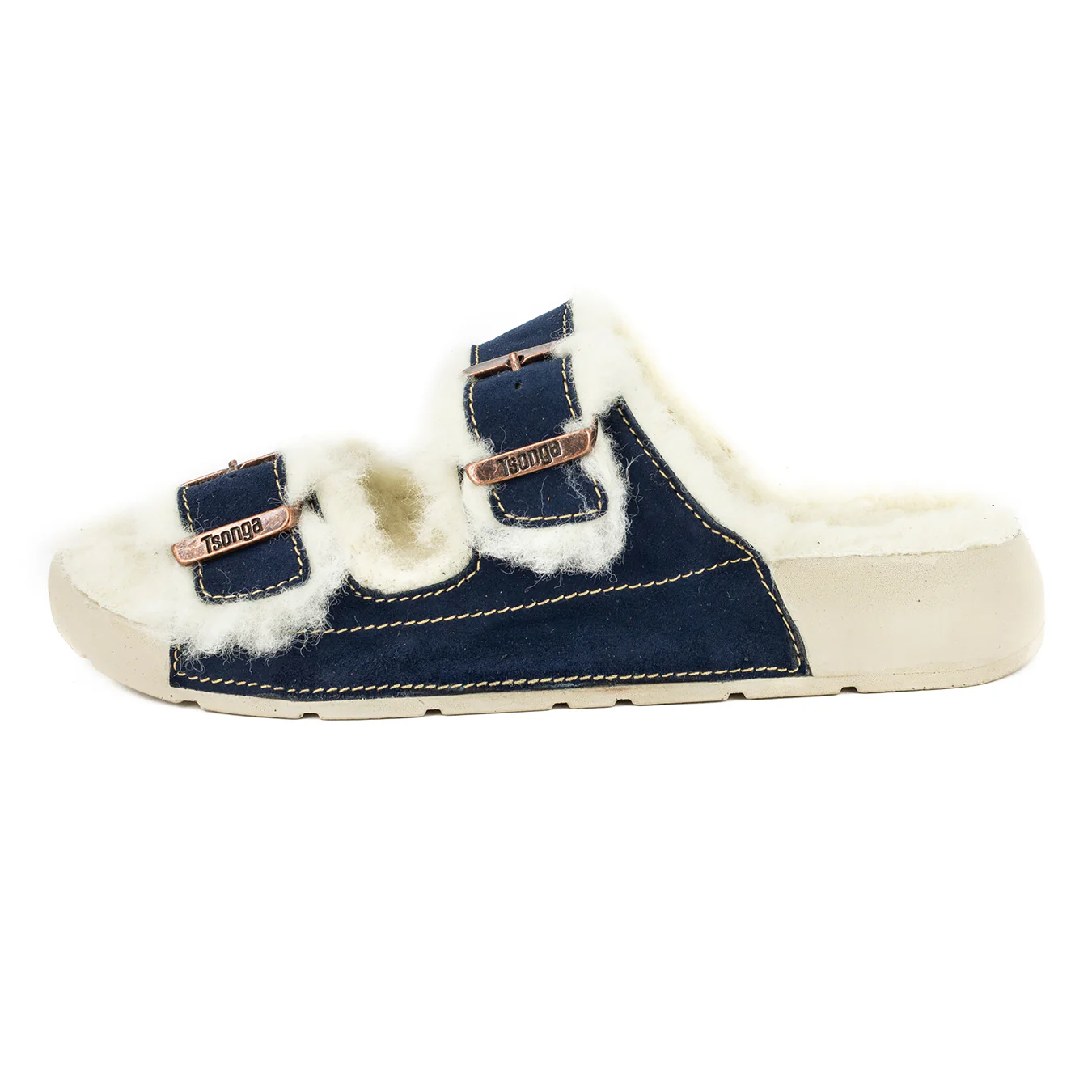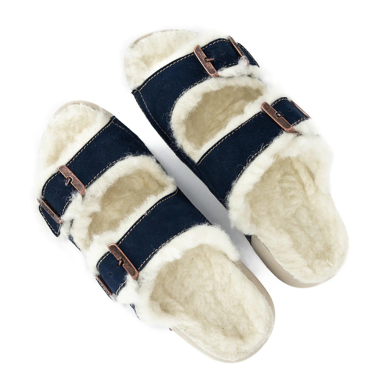 Abidjan : Ladies Leather Sandal with Wool Lining in Navy