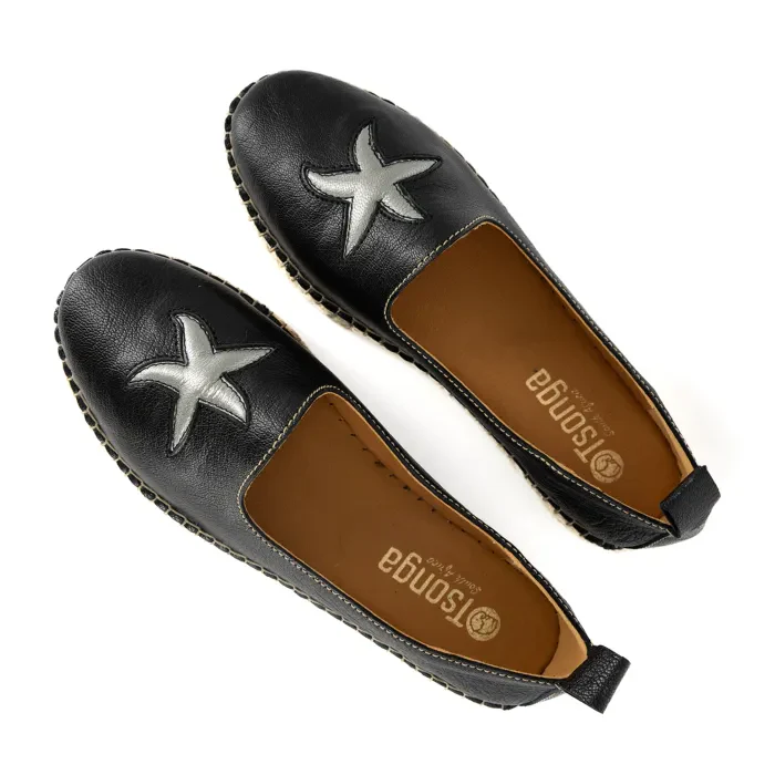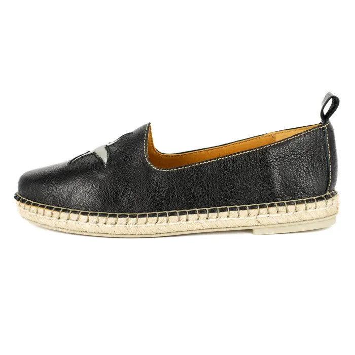 Abimbola : Ladies Leather Espadrille Shoe in Black & Tallio