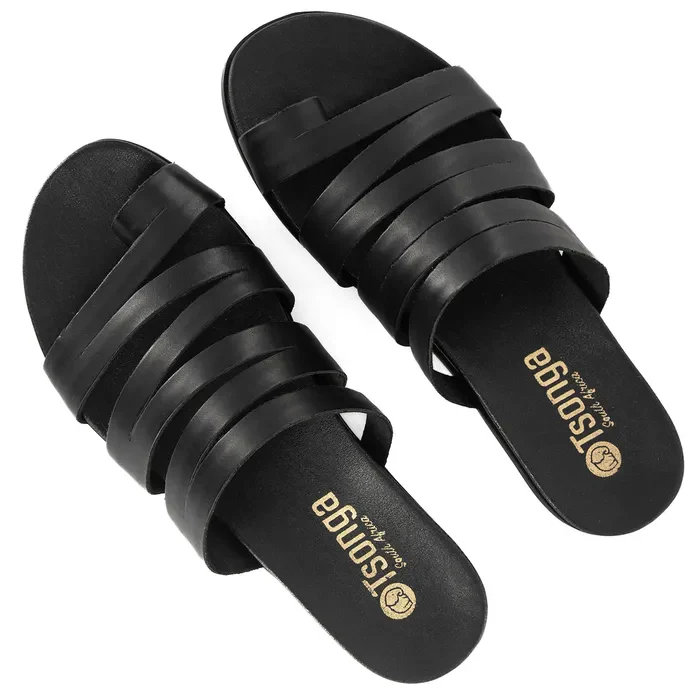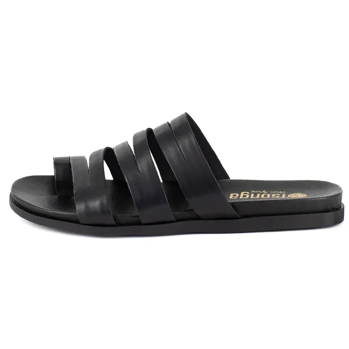 Abuye : Ladies Leather Sandal in Black Relaxa