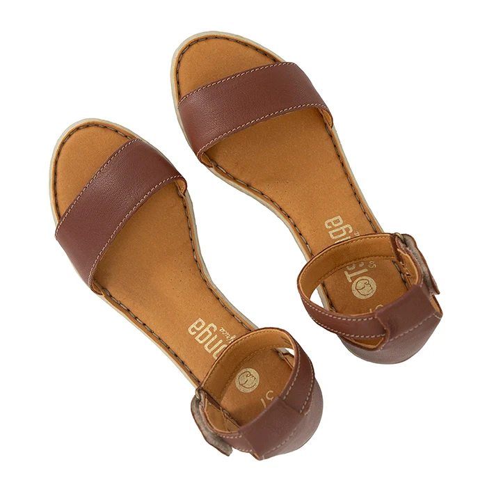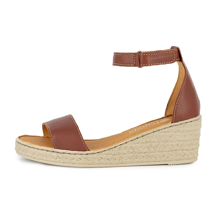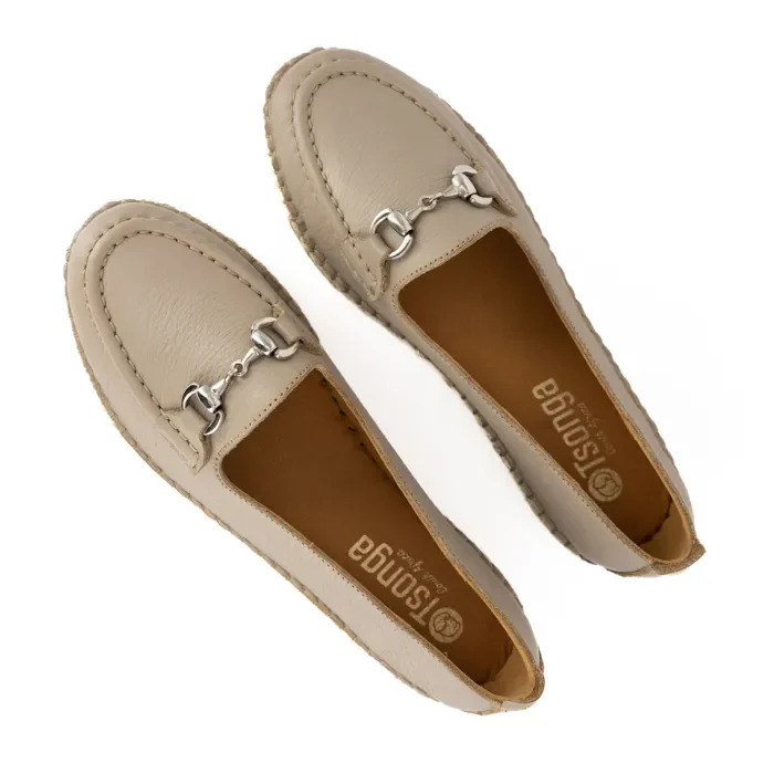 Kataleya : Ladies Leather Espadrille Shoe in Gravel