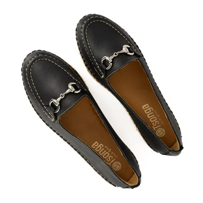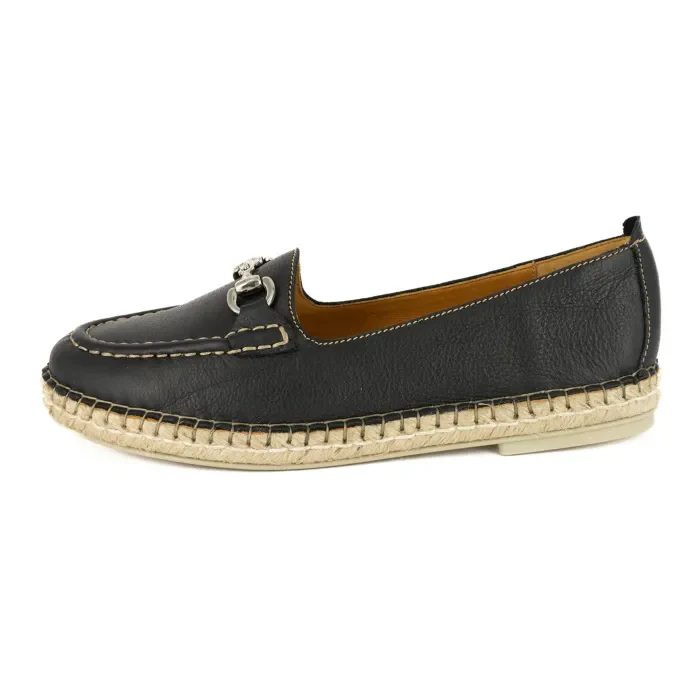 Kataleya : Ladies Leather Espadrille Shoe in Black