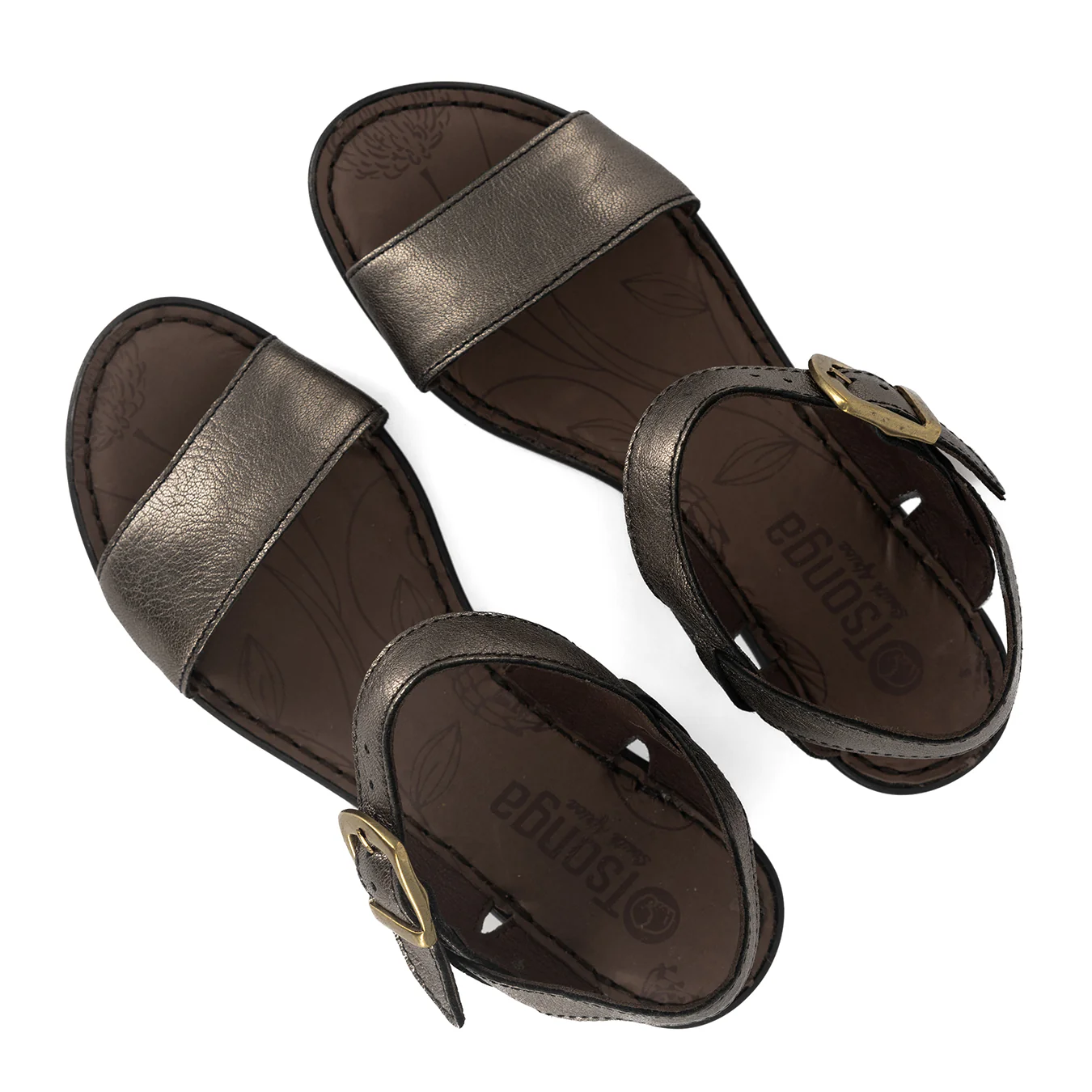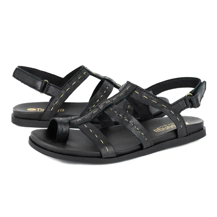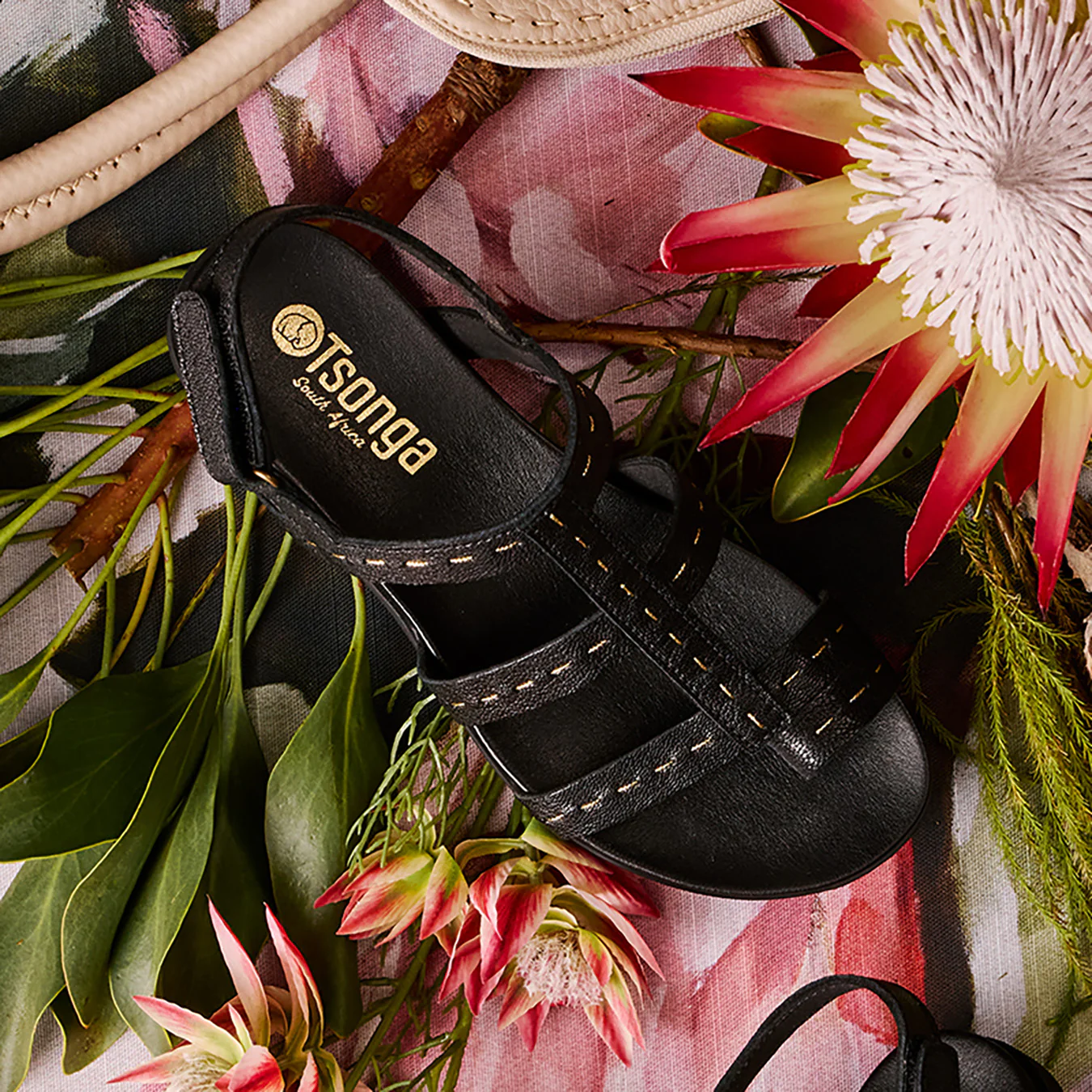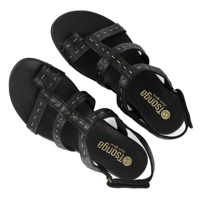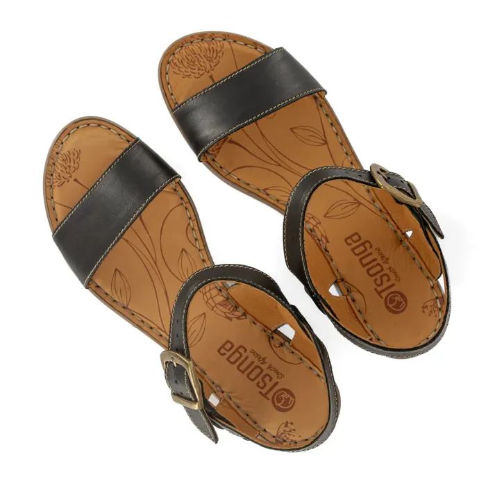Kangcono : Ladies Leather Sandal in Black Relaxa
