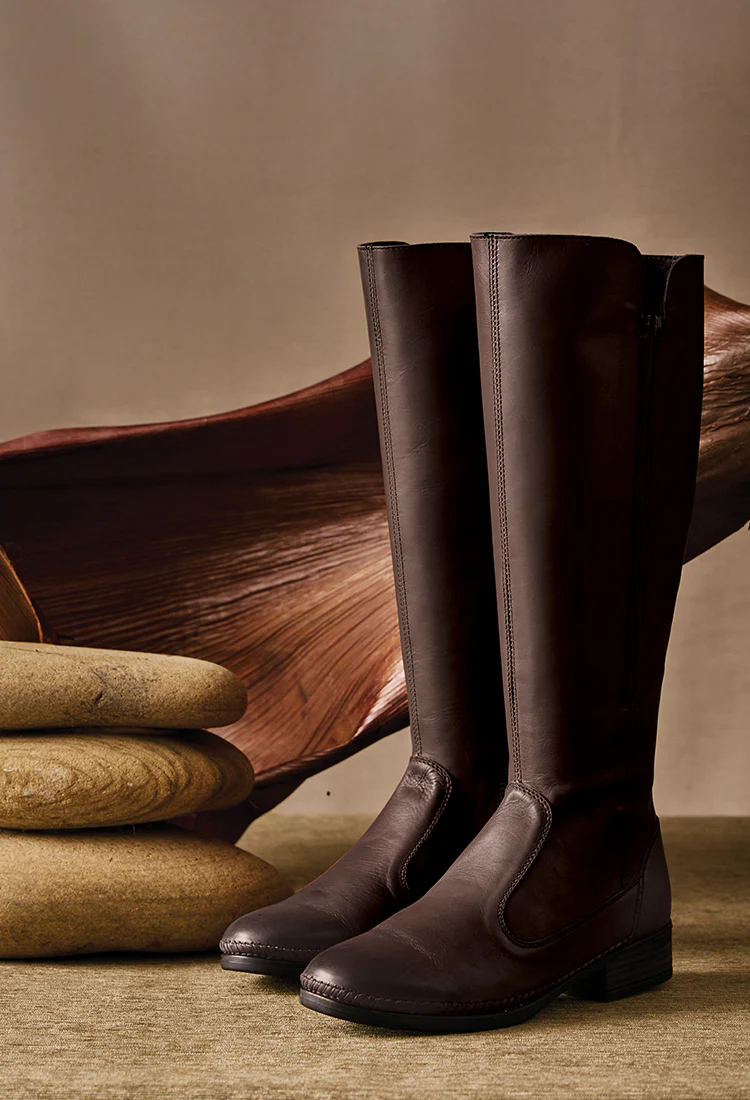 Inwabi : Ladies Leather Rider Boot in Choc Relaxa