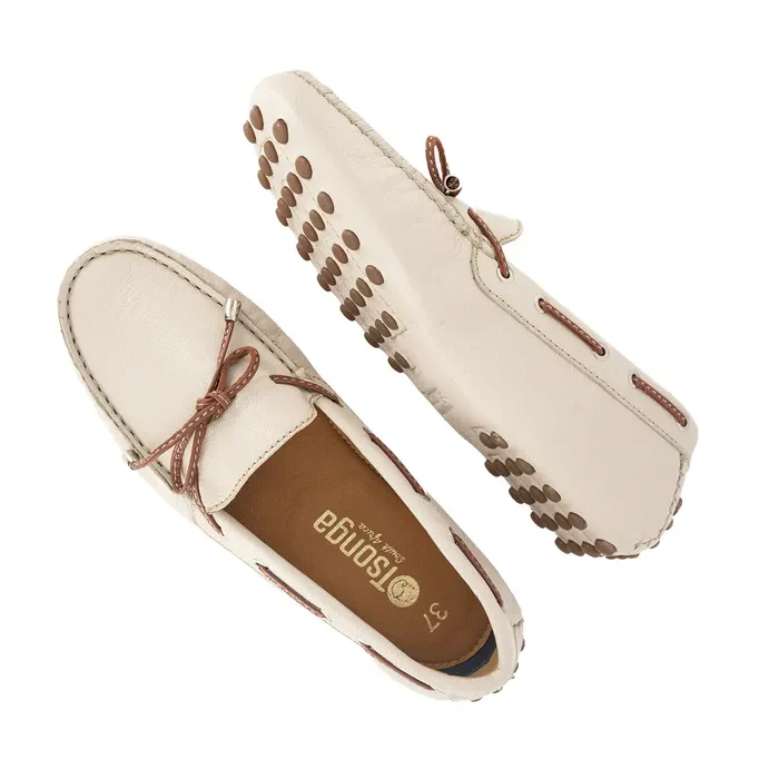 Kamensi : Ladies Leather Moccasin In Cream Cayak