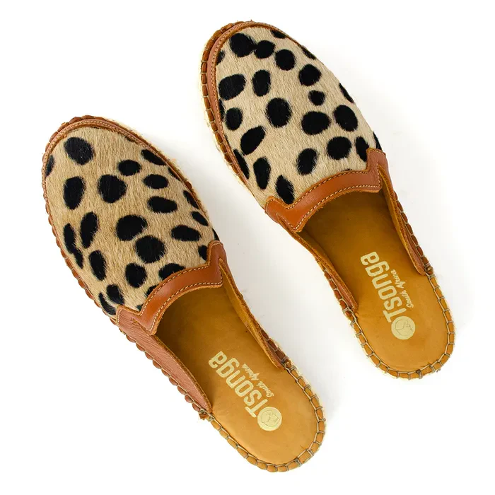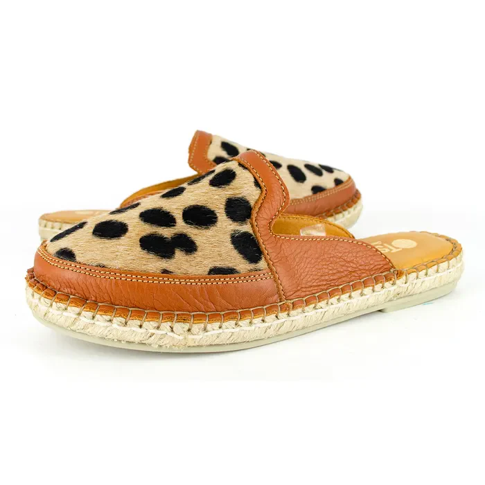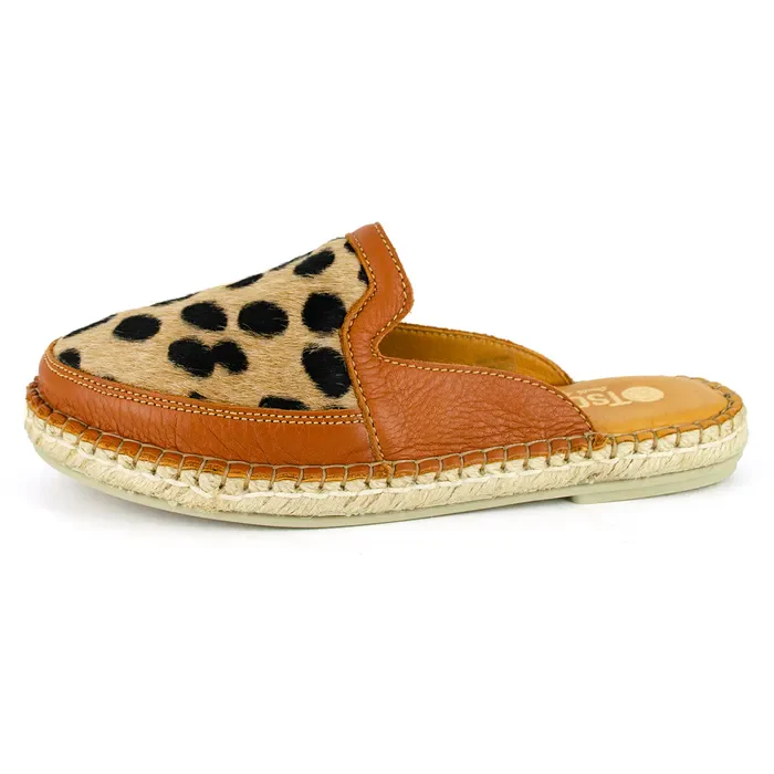 Halamuza : Ladies Leather Espadrille Mule in Oak & Spotted Lisoto