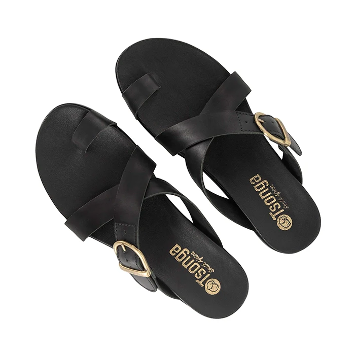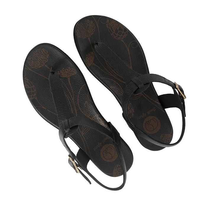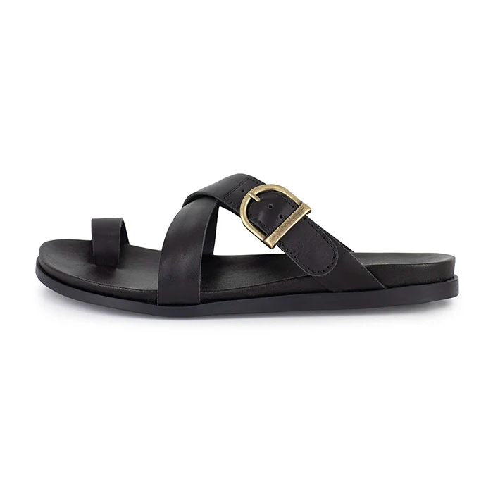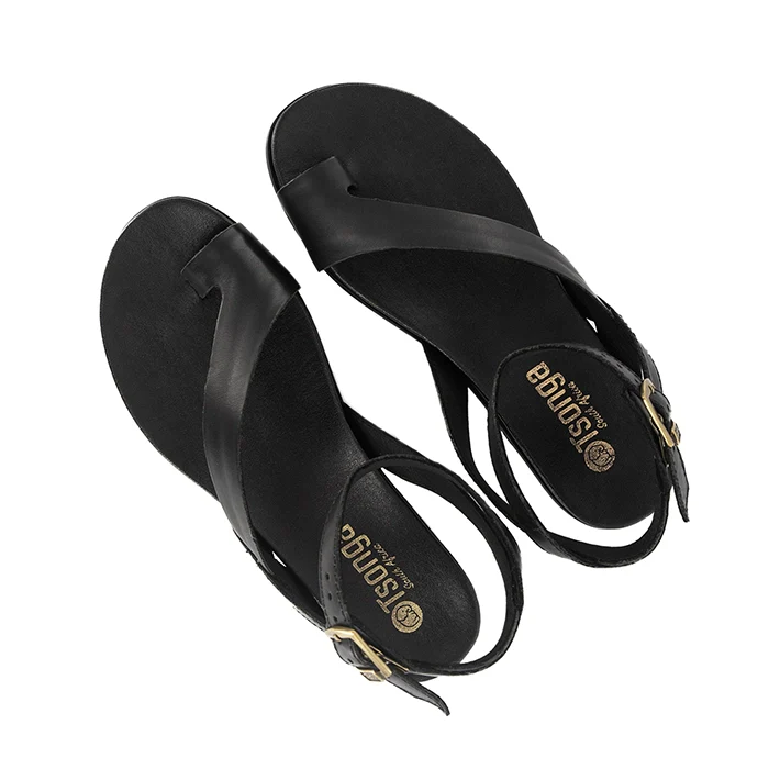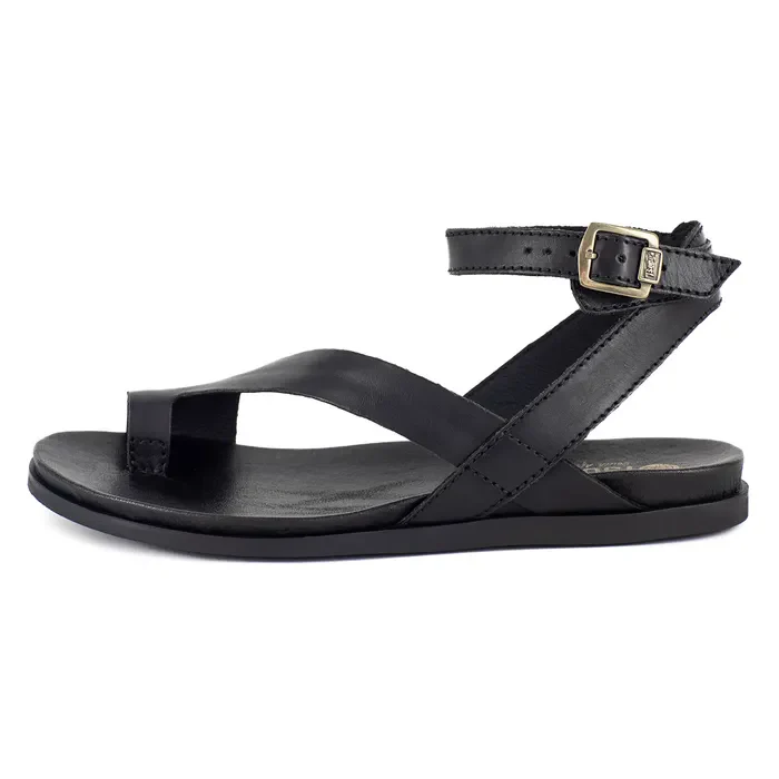 Ugalonci : Ladies Leather Sandal in Black Relaxa