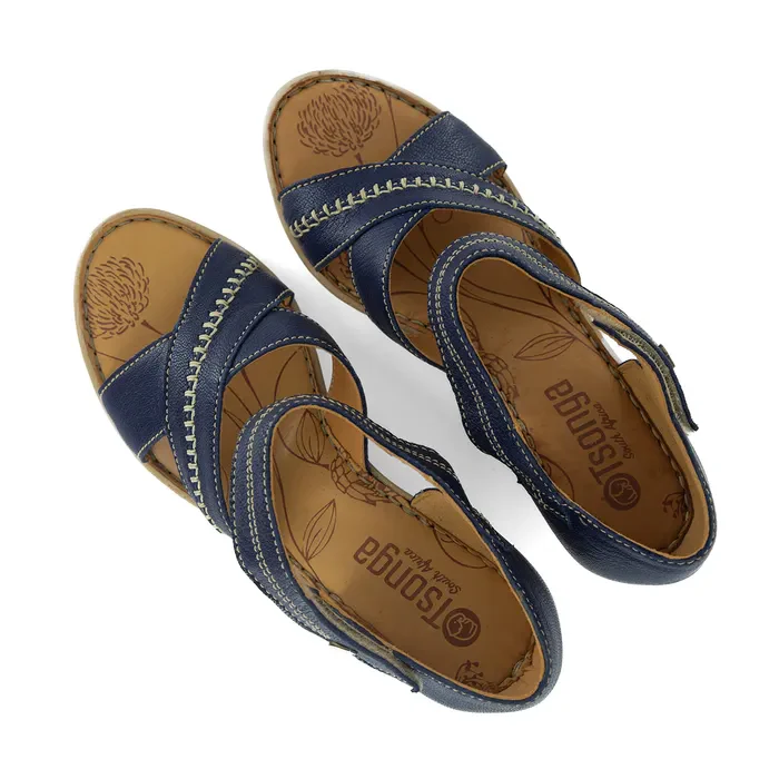 Tangier : Ladies Leather High-Heel Sandal in Marine