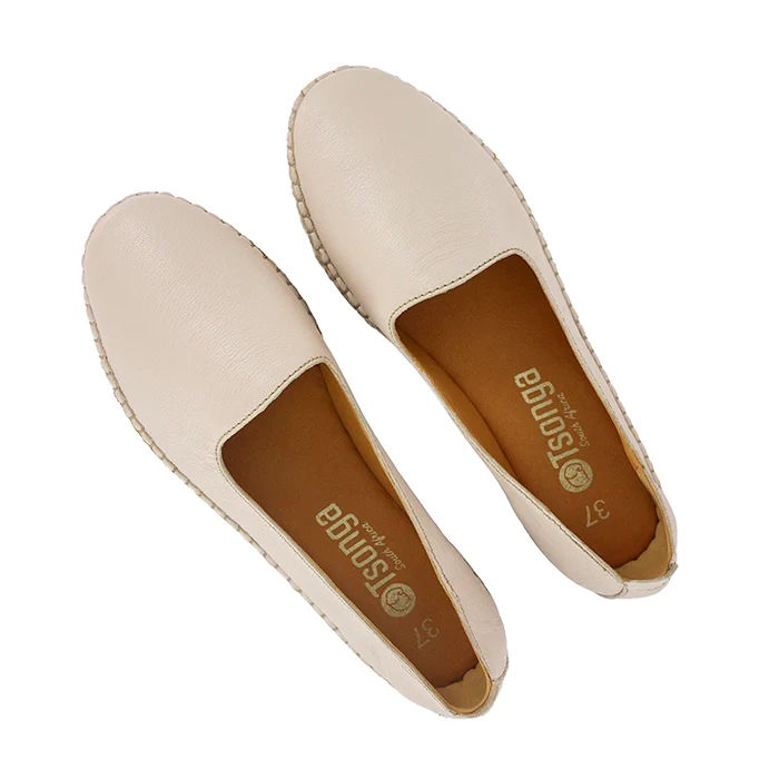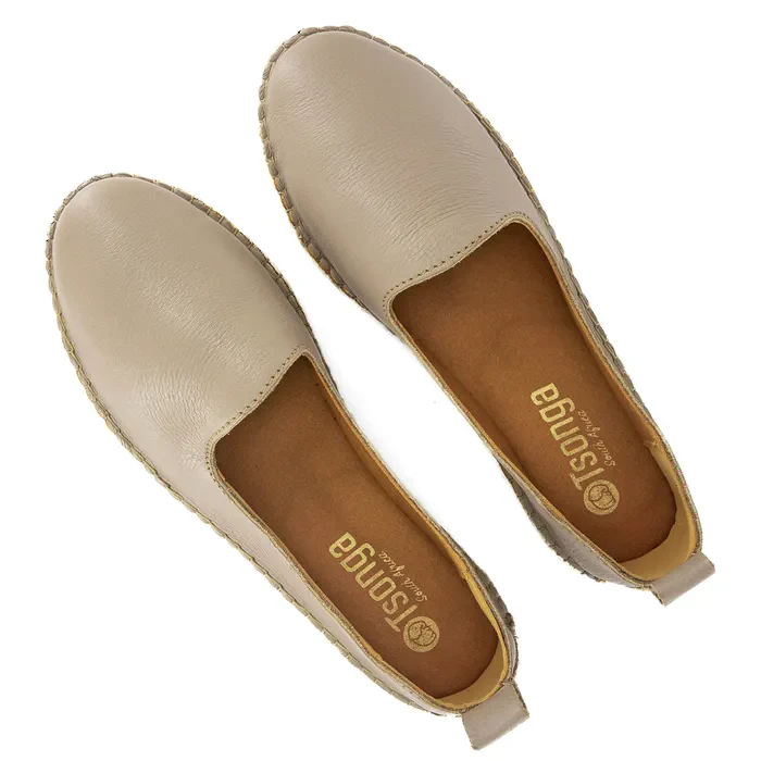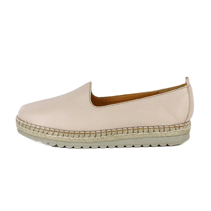 Indzima : Ladies Leather Espadrille Shoe in Stone
