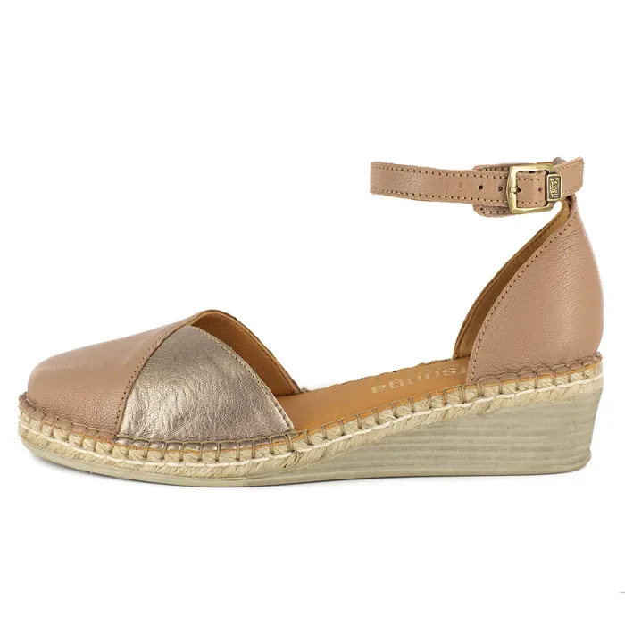 Mirembe : Ladies Leather Wedge Espadrille in Timber & Sabbia