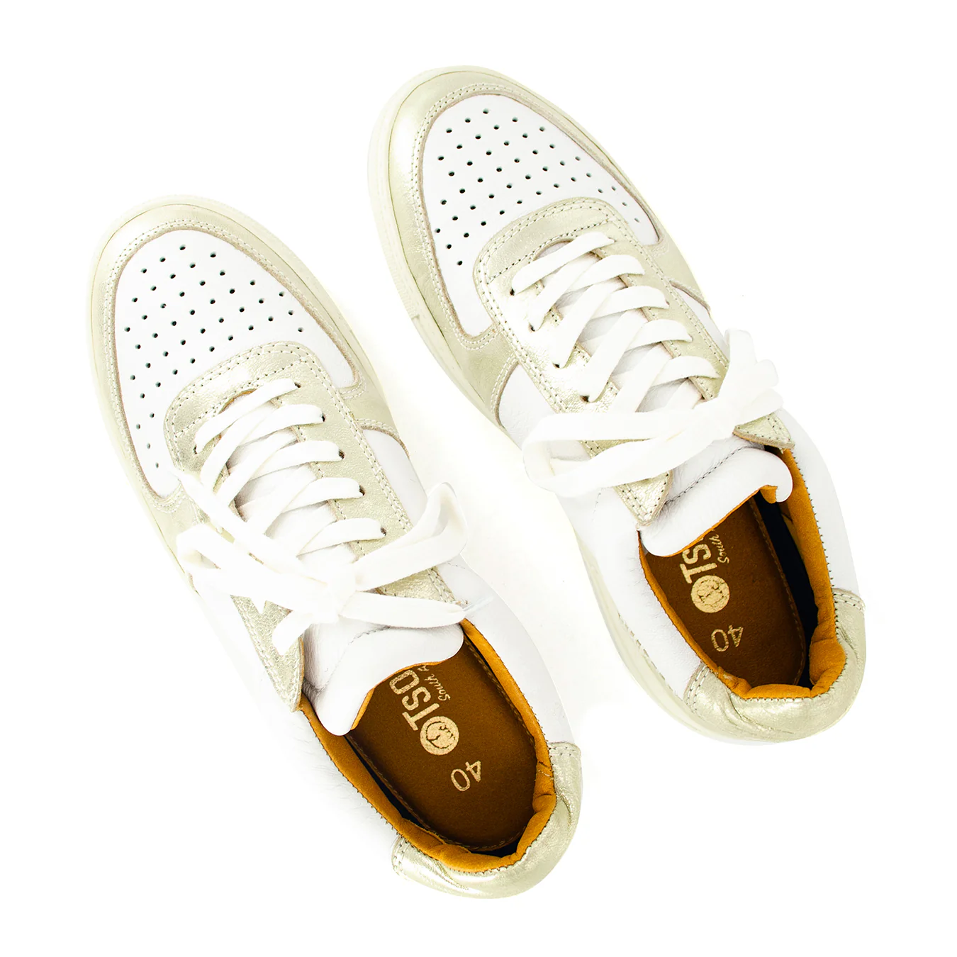 Kwazondi : Ladies Leather Platform Sneaker in Cream Cayak Sabbia Galaxy