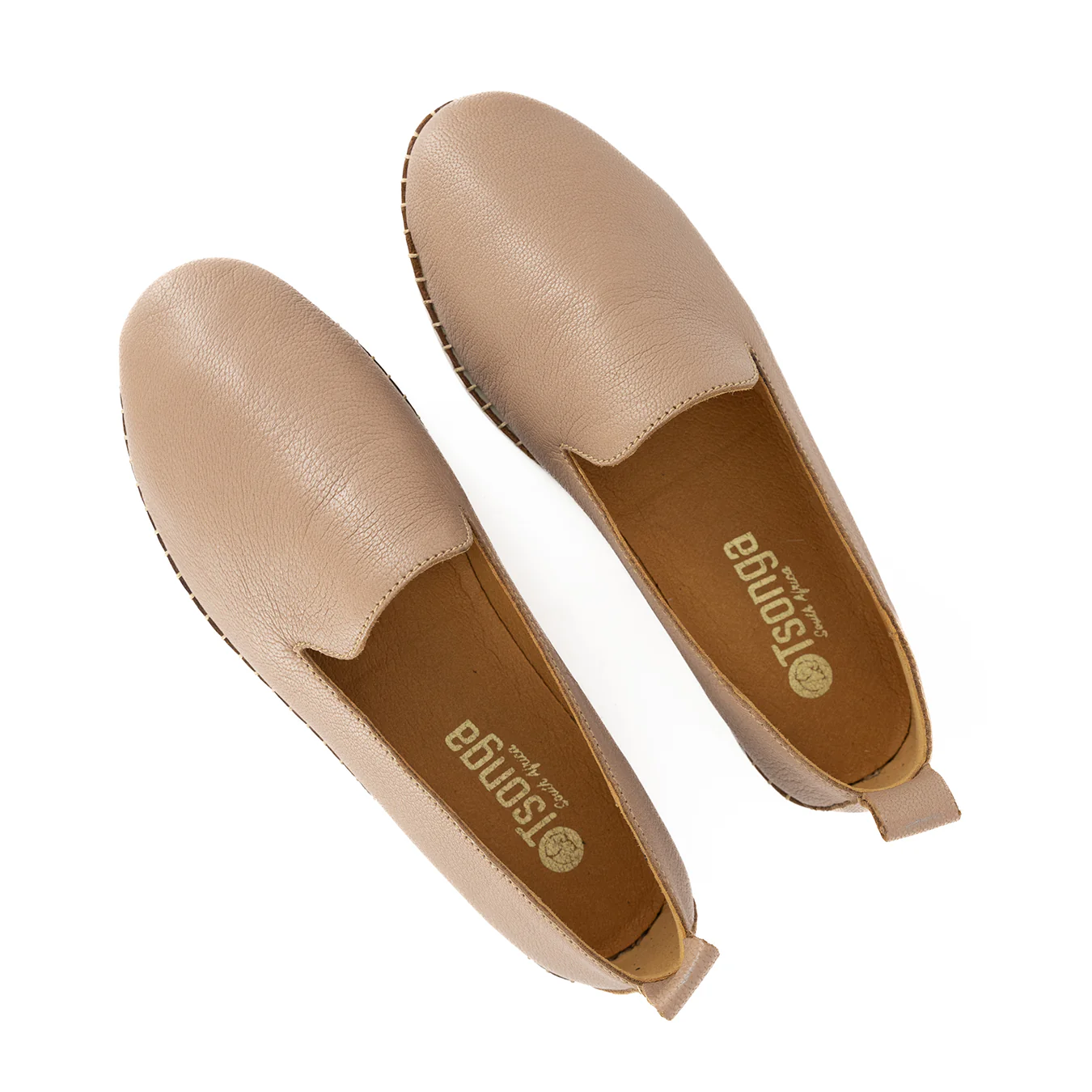 Mabuyana : Ladies Leather Pump in Cream & Fungi