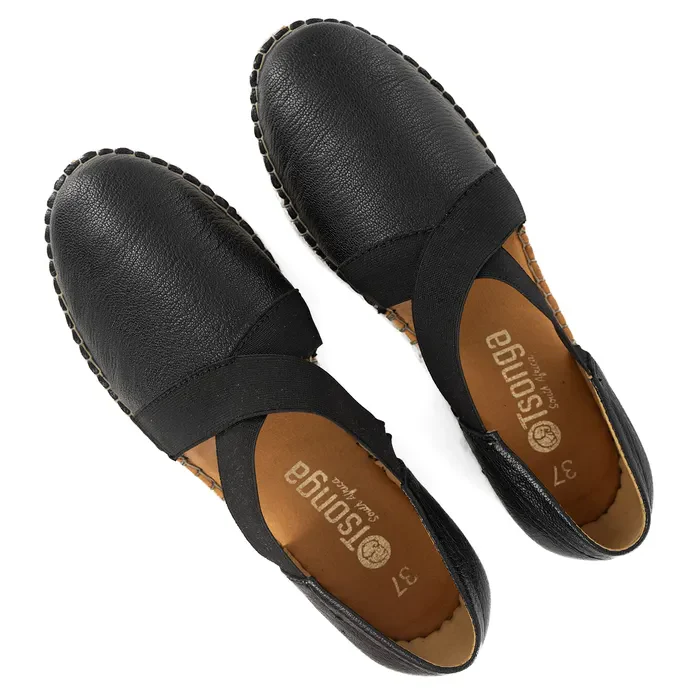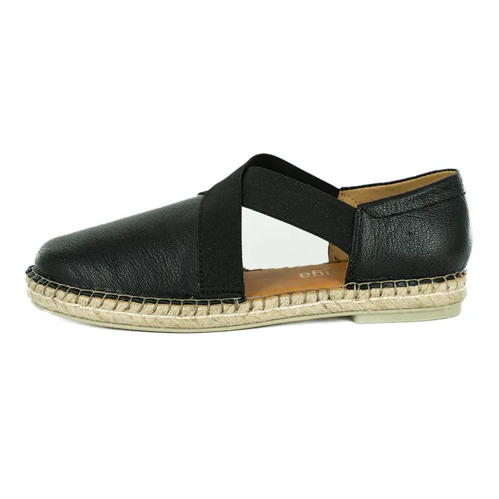 Jankomo : Ladies Leather Espadrille Shoe in Black