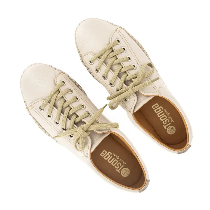 Tripoli : Ladies Leather Sneaker in White & Cream
