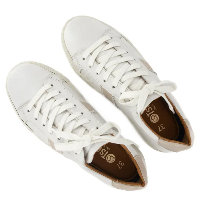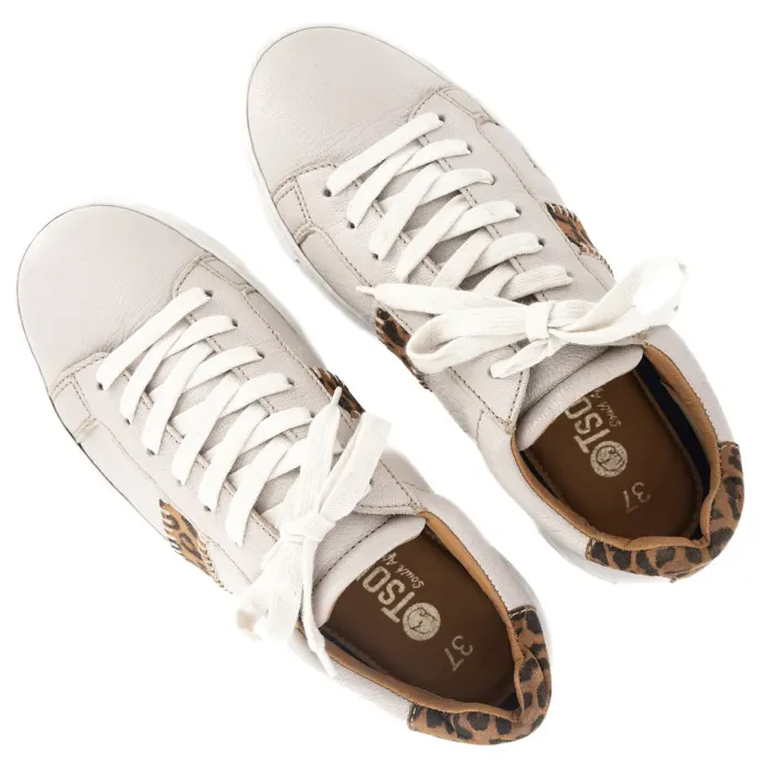 Tripoli : Ladies Leather Sneaker in Cream & Spotted Lisoto