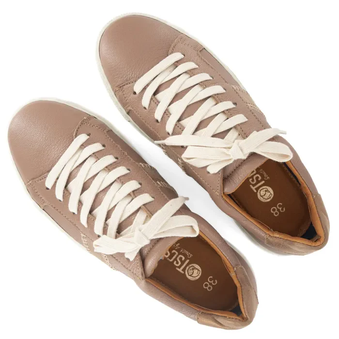Tripoli : Ladies Leather Sneaker in Timber & Beige
