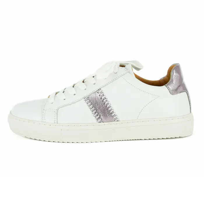 Tripoli : Ladies Leather Sneaker in White & Blush