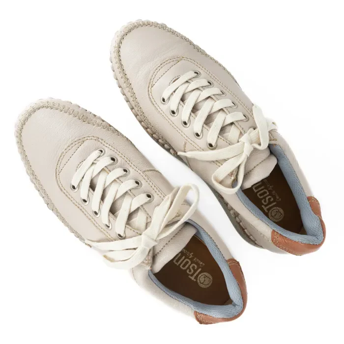 Tripoli : Ladies Leather Sneaker in Cream & Stone
