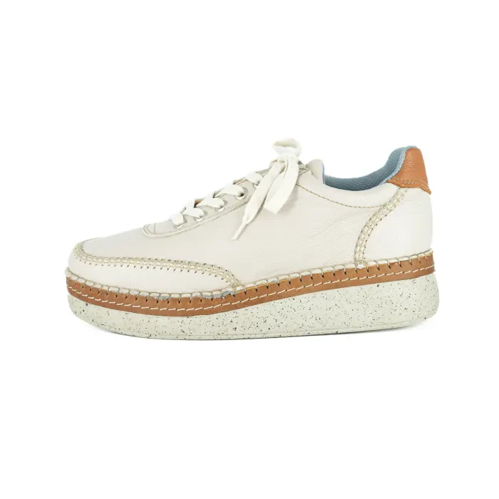 Kwazondi : Ladies Leather Platform Sneaker in Cream Cayak Sabbia Galaxy
