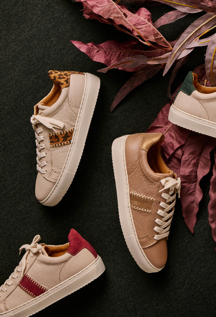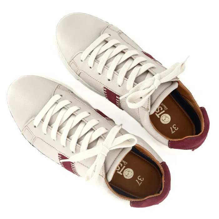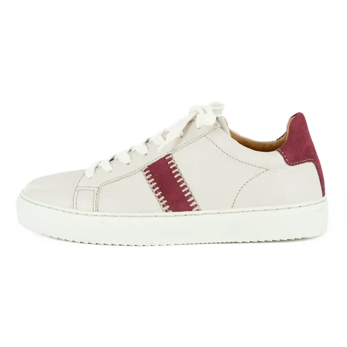 Tripoli : Ladies Leather Sneaker in Cream & Burgandy