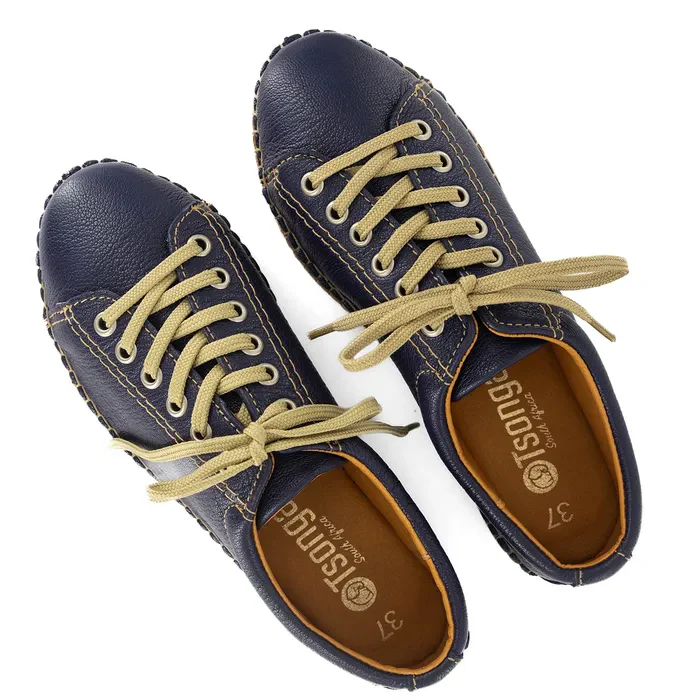 Kwazondi : Ladies Leather Platform Sneaker in White & Marine Cayak