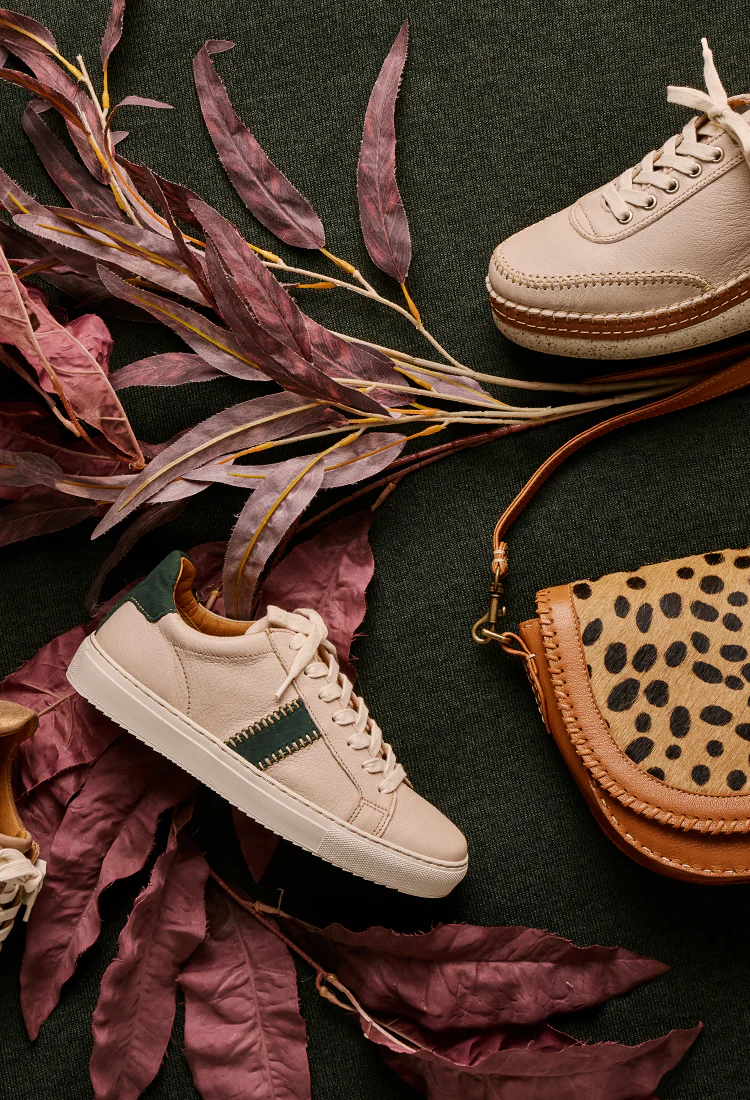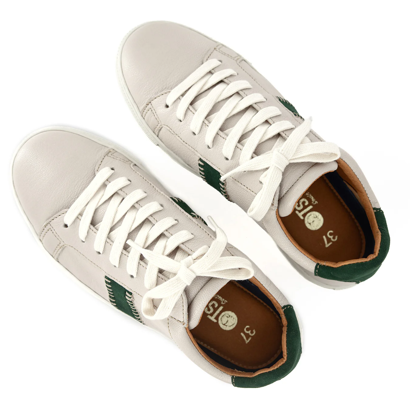 Tripoli : Ladies Leather Sneaker in Cream & Pine