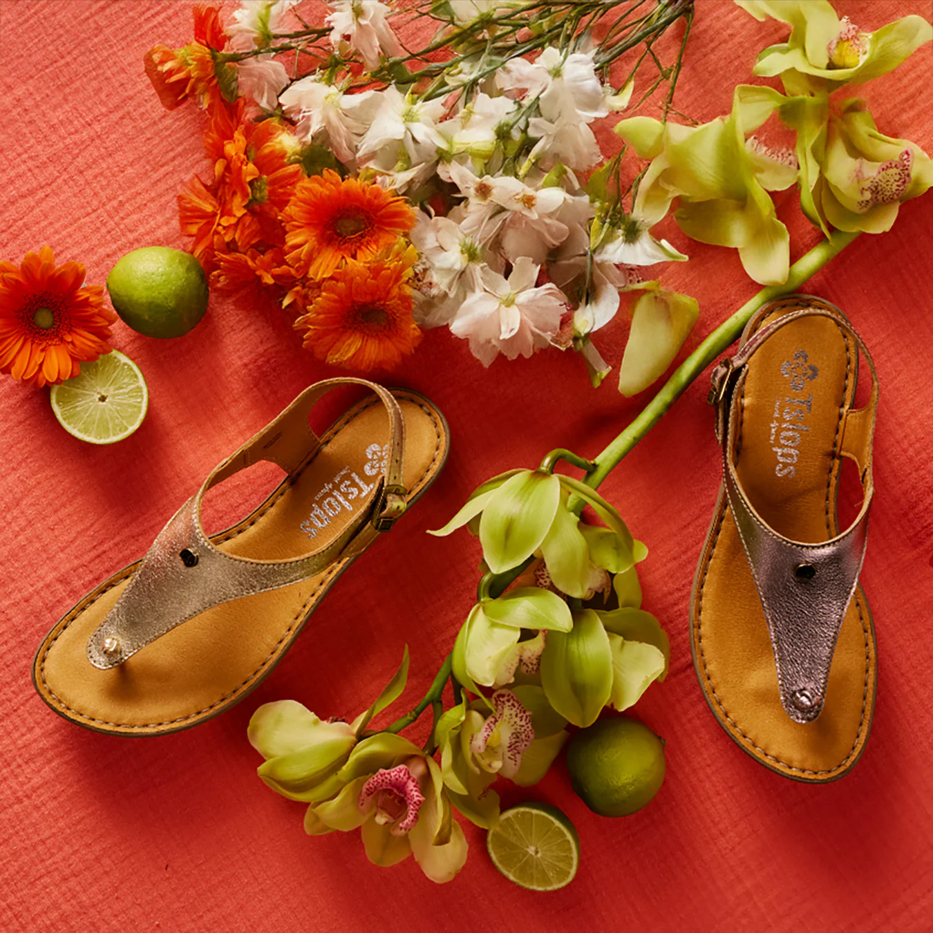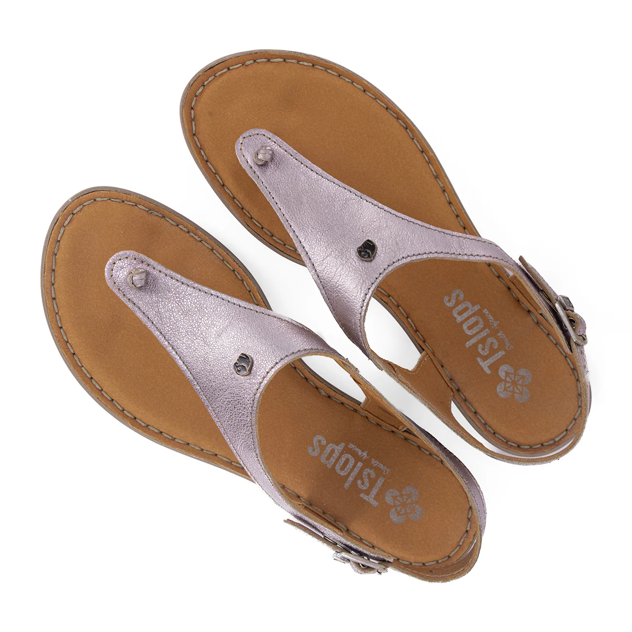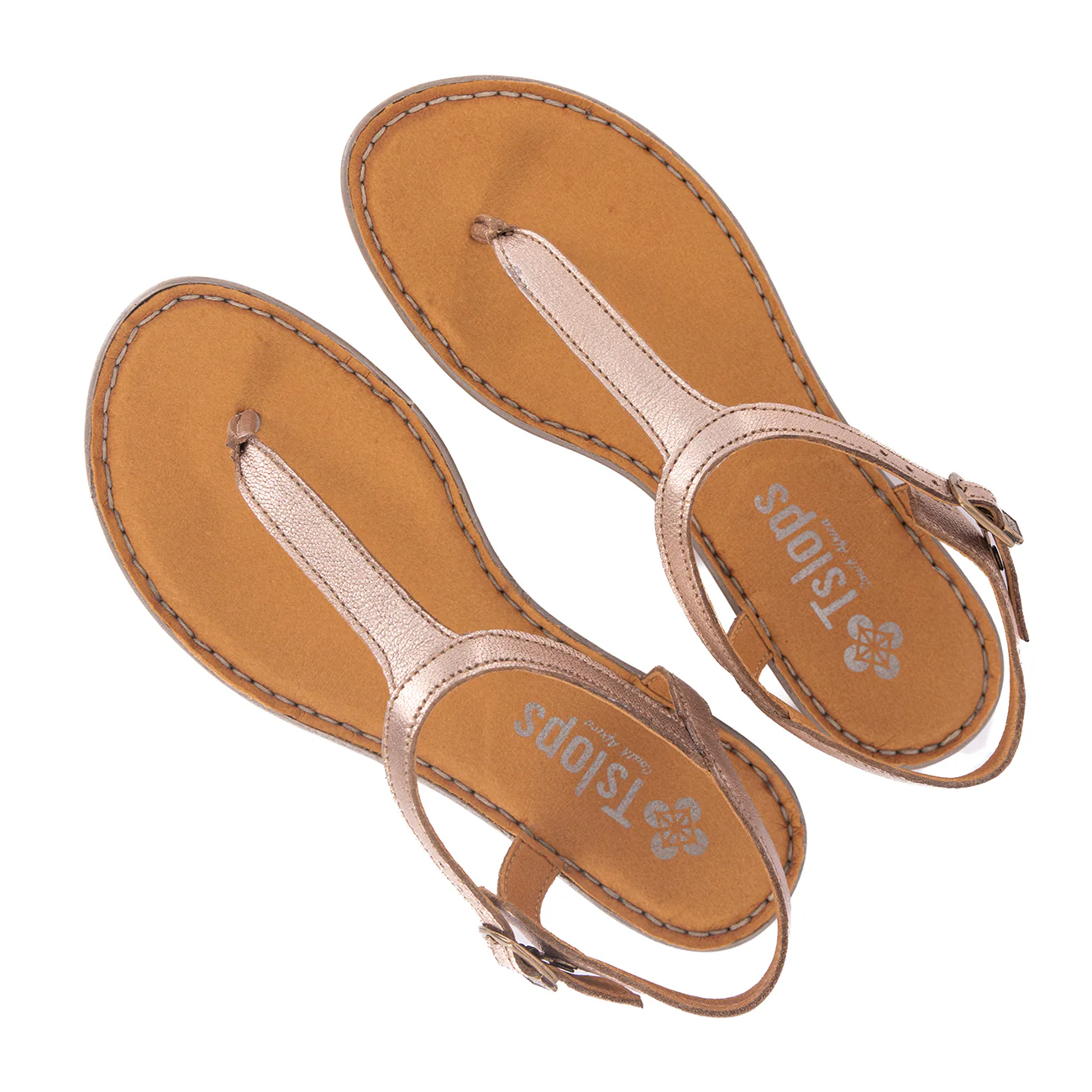 Khuthaza : Ladies Leather Tslops Sandal in Rose Gold Metallic