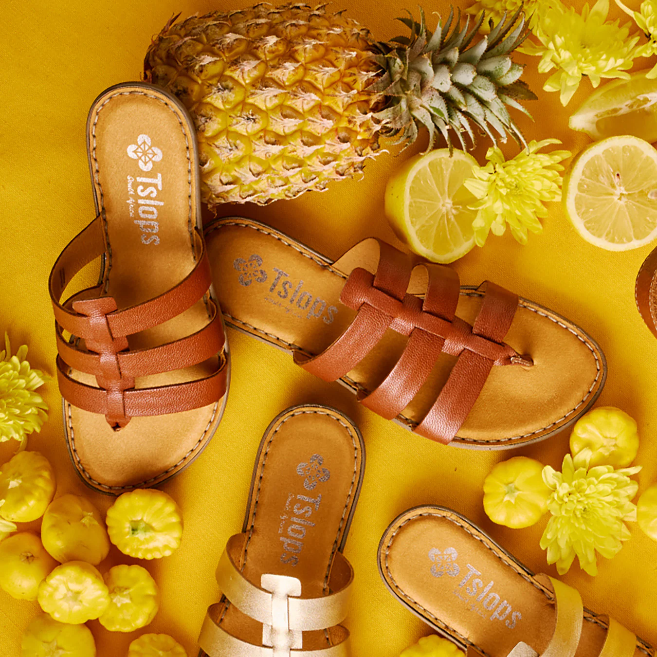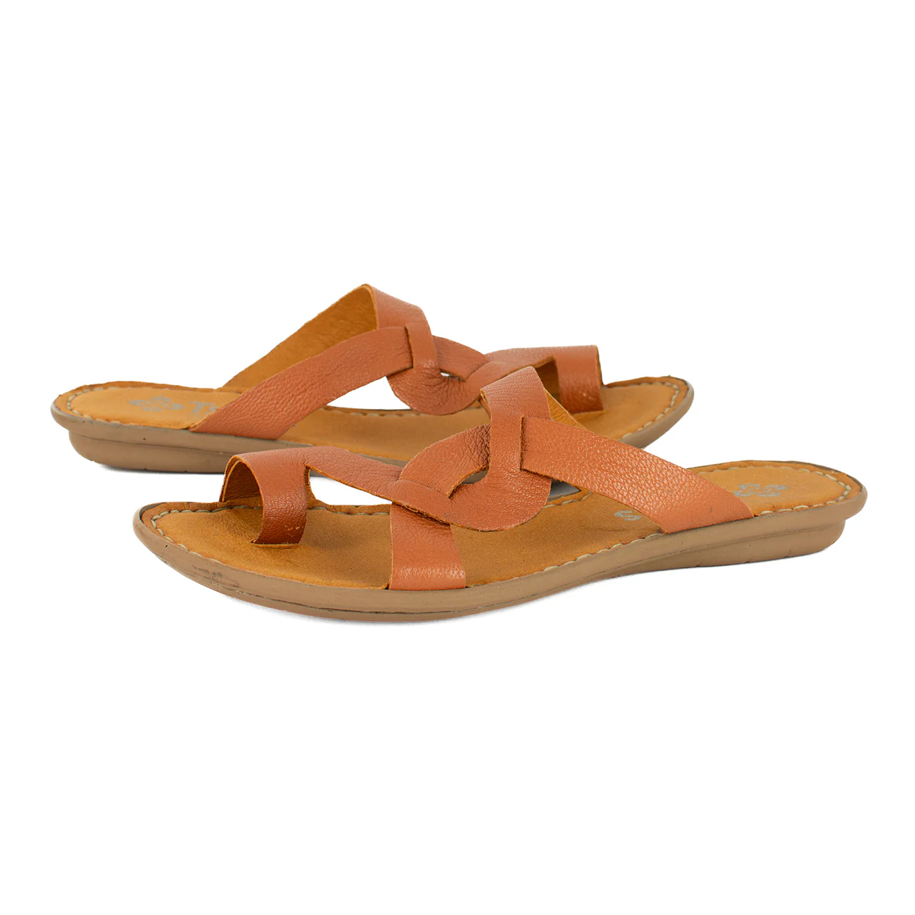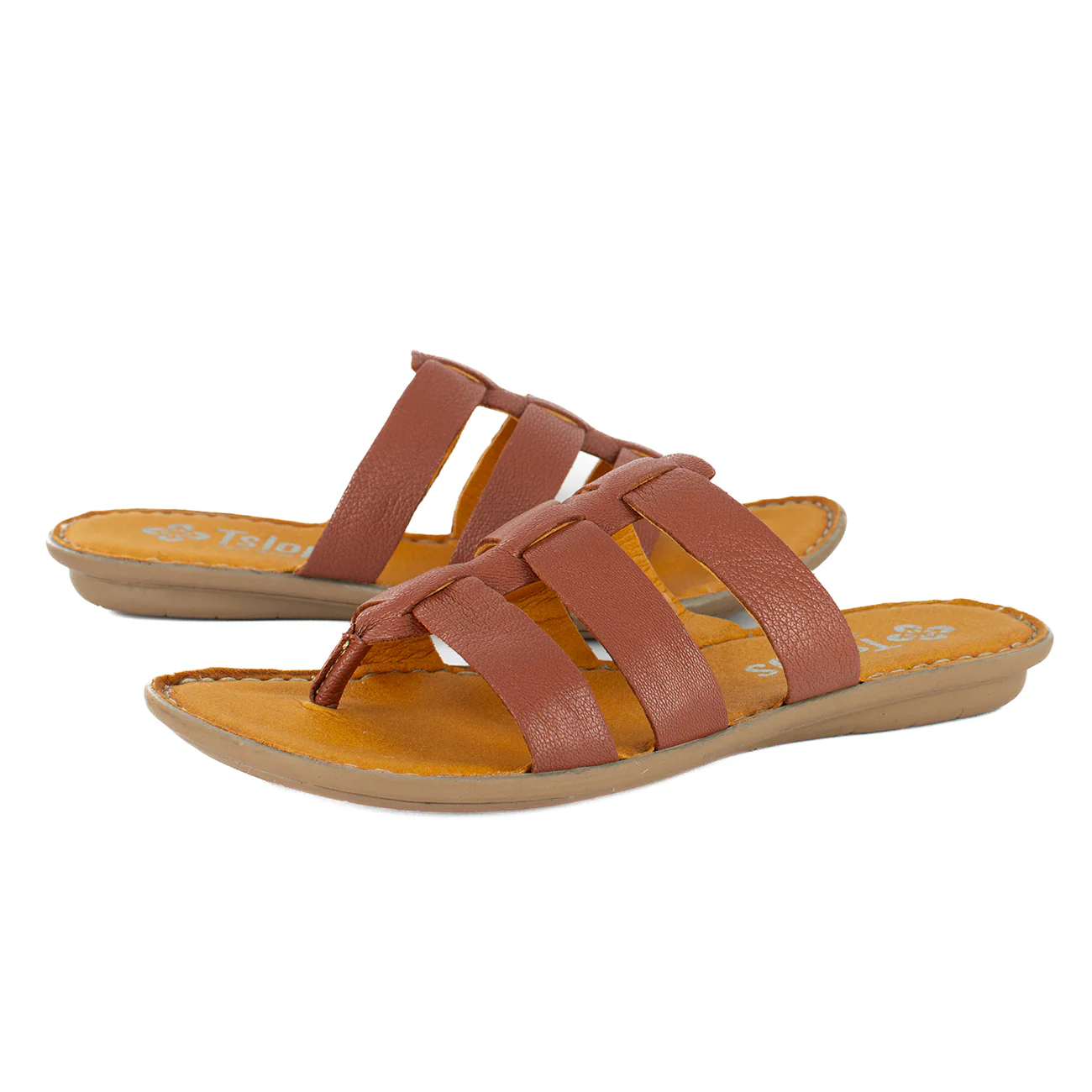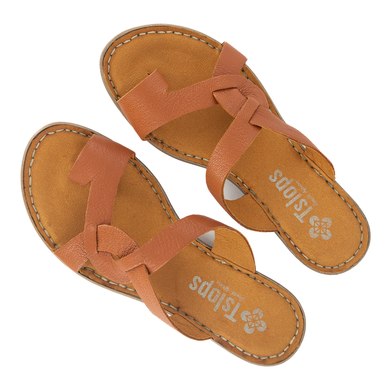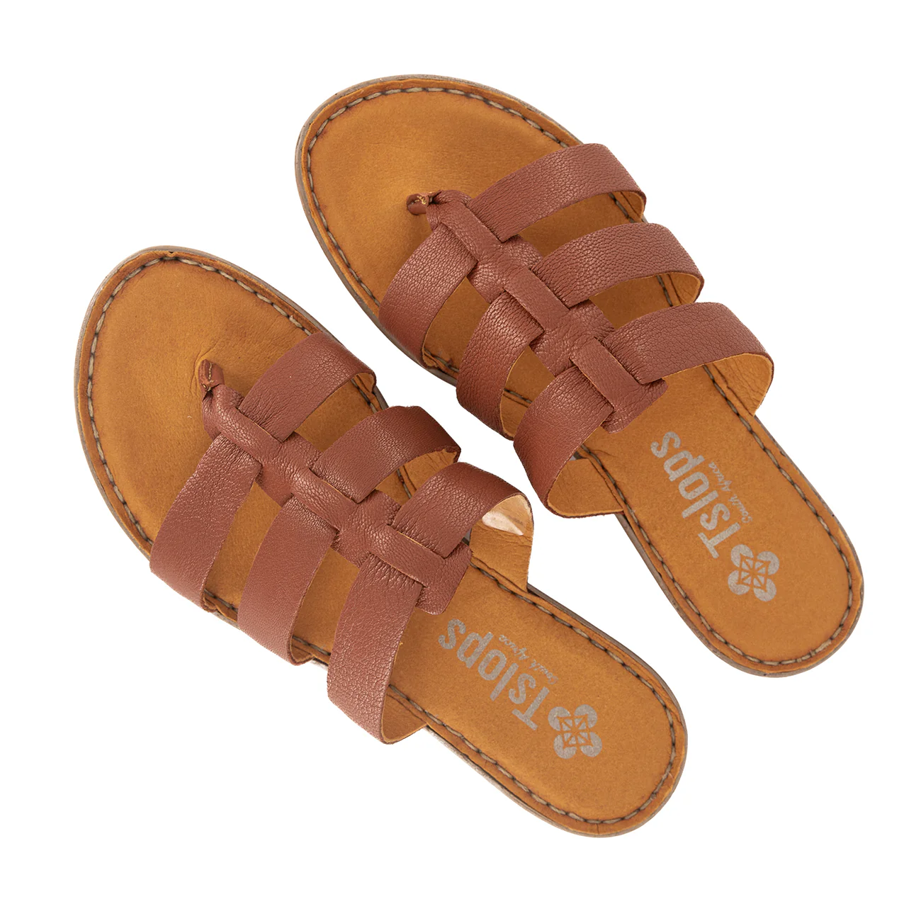 Kulumbe : Ladies Leather Tslops Sandal in Oak Cayak