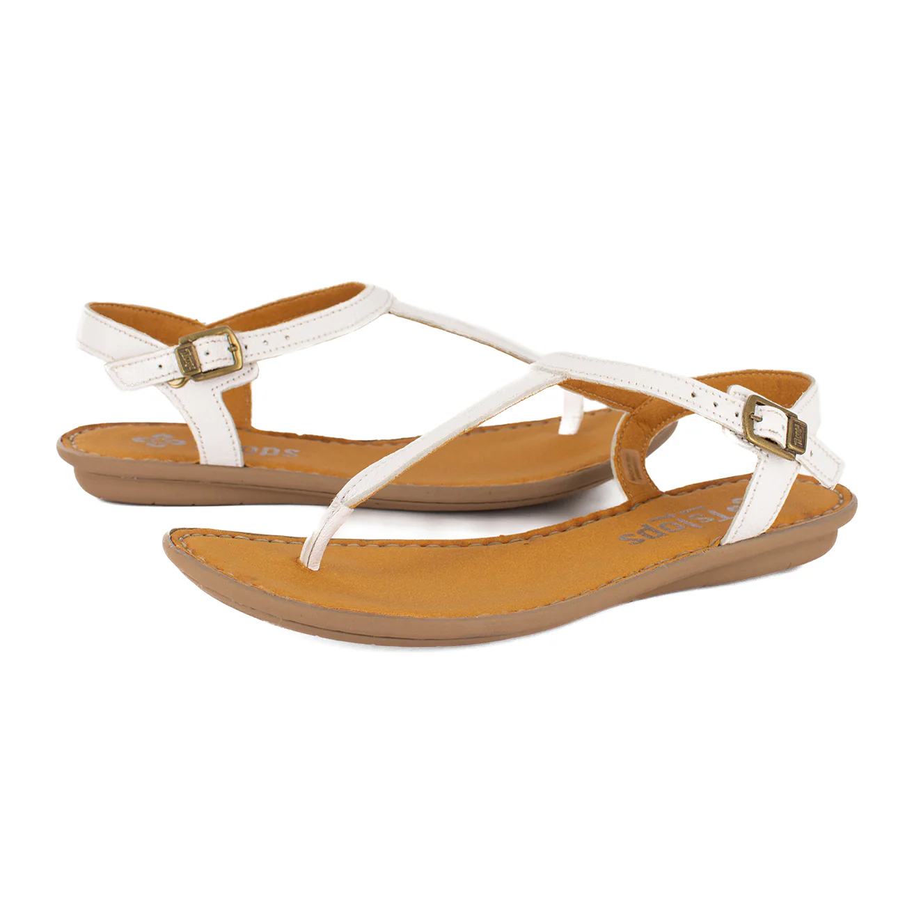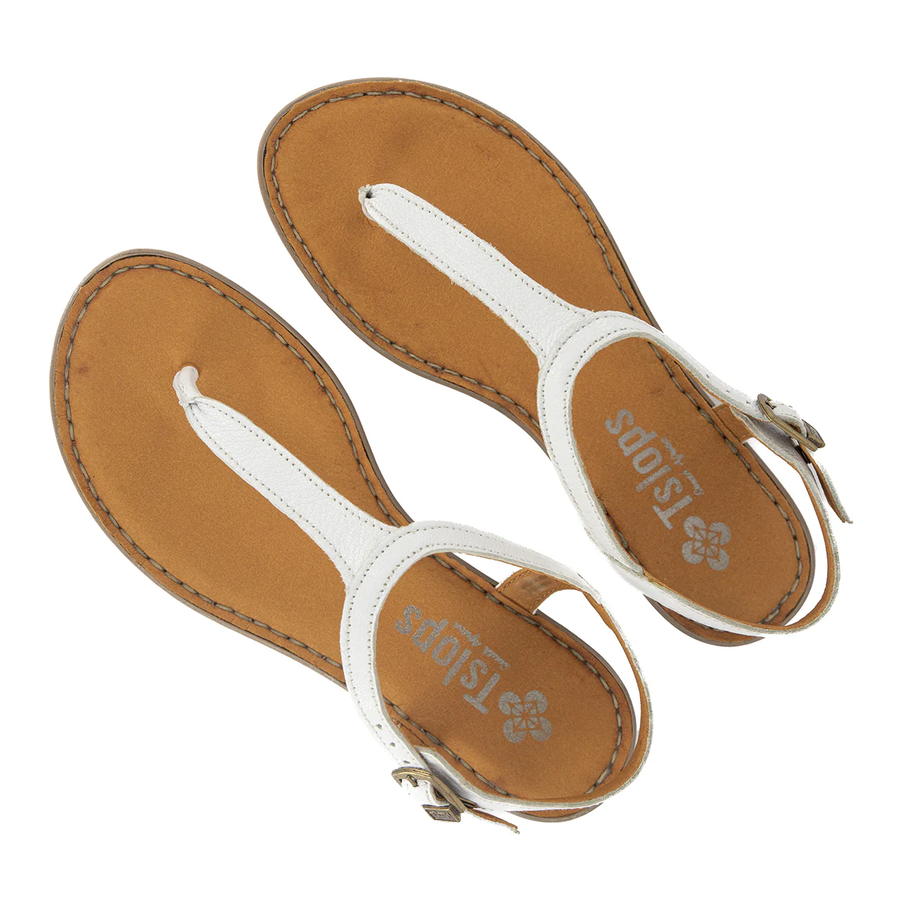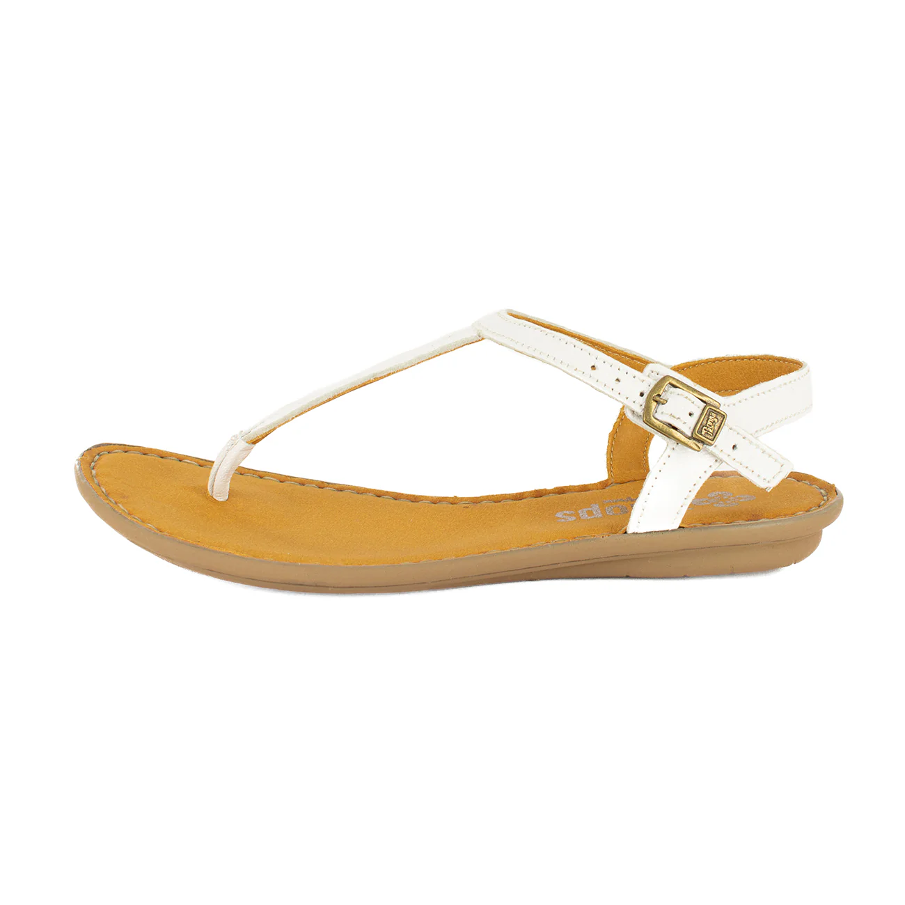 Khuthaza : Ladies Leather Tslops Sandal in White Cayak