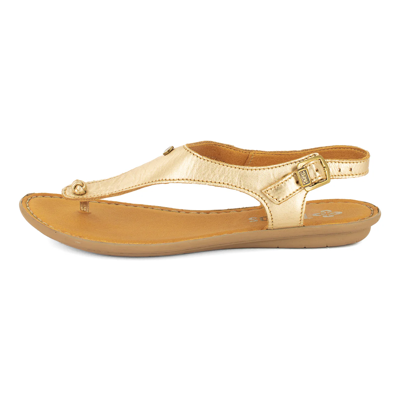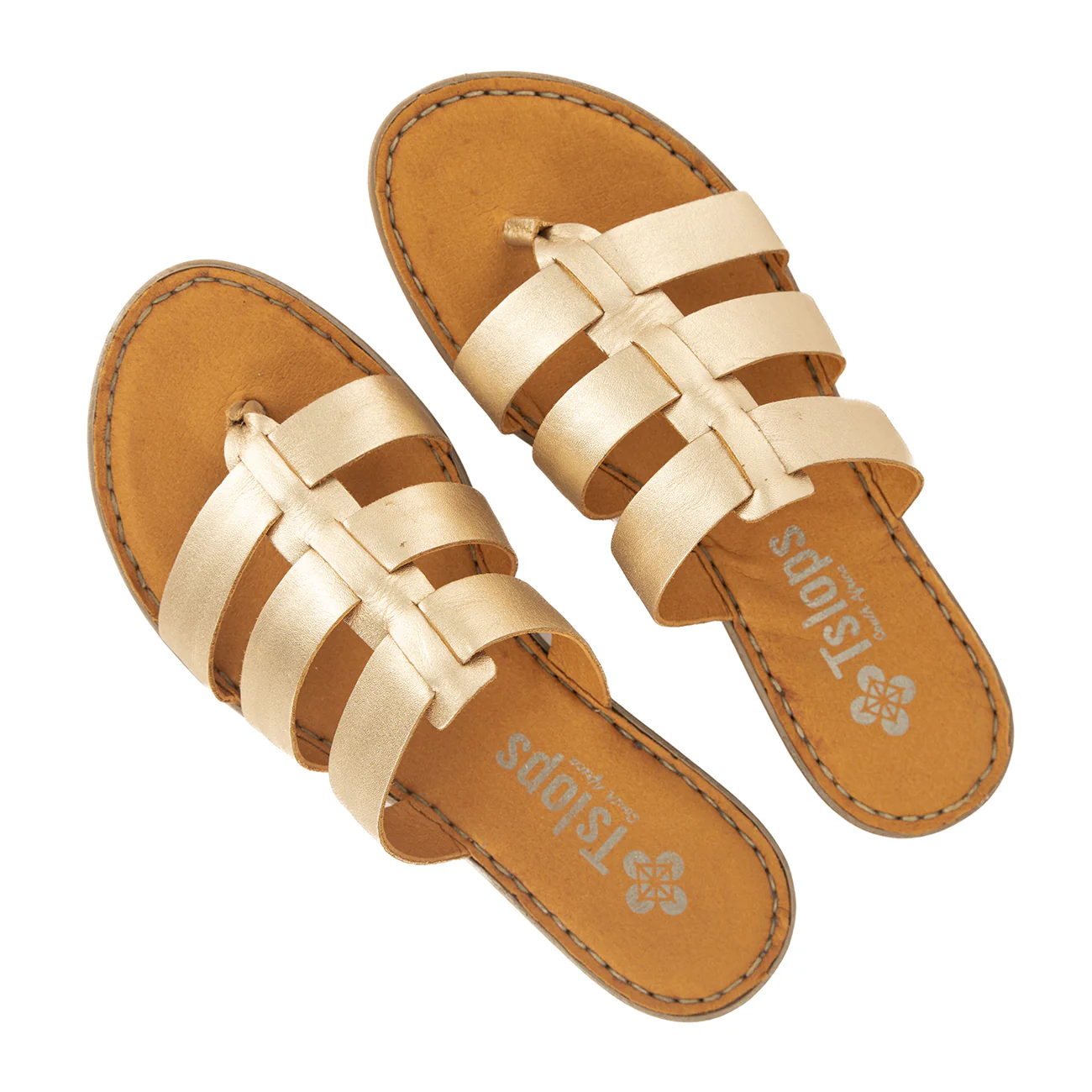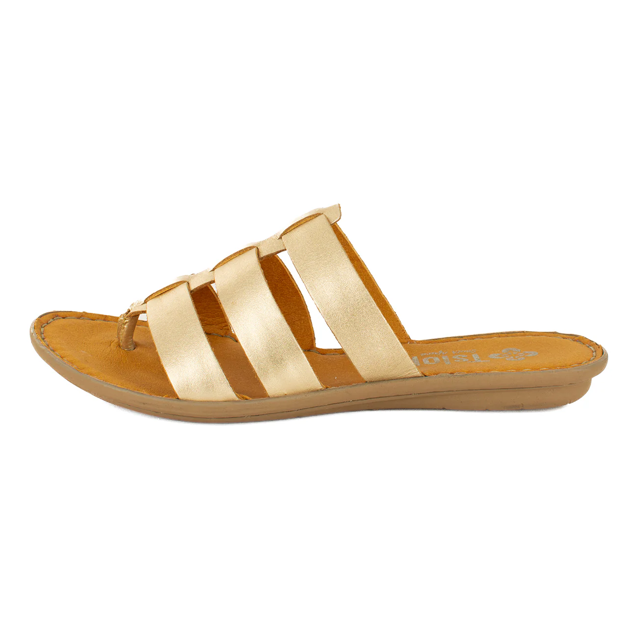 Maroua : Ladies Leather Tslops Sandal in Gold Foil